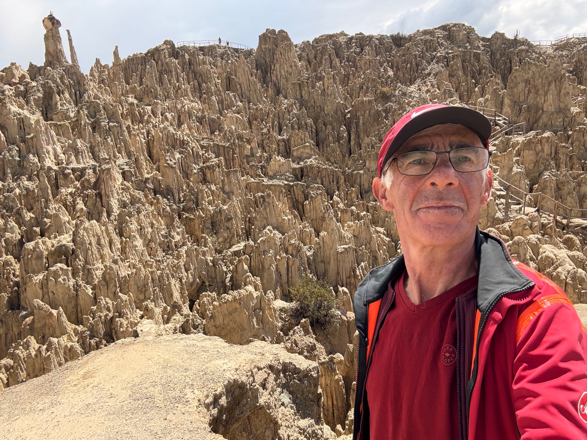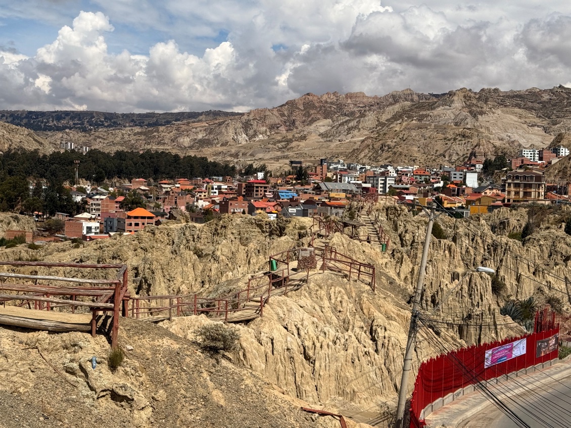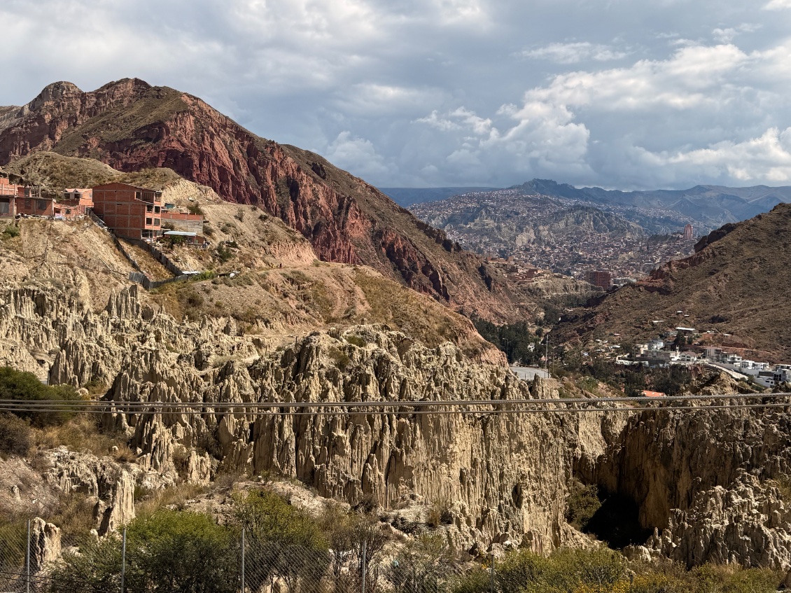 Ce matin j’ai fait une sortie incroyable en allant visiter la Vallée de la Lune, qui se trouve à seulement quelques kilomètres du centre de La Paz. C’est un endroit totalement dépaysant : un paysage de cheminées de fée, de pics effilés et de crevasses sculptées par l’érosion, qui donne vraiment l’impression de marcher sur une autre planète.