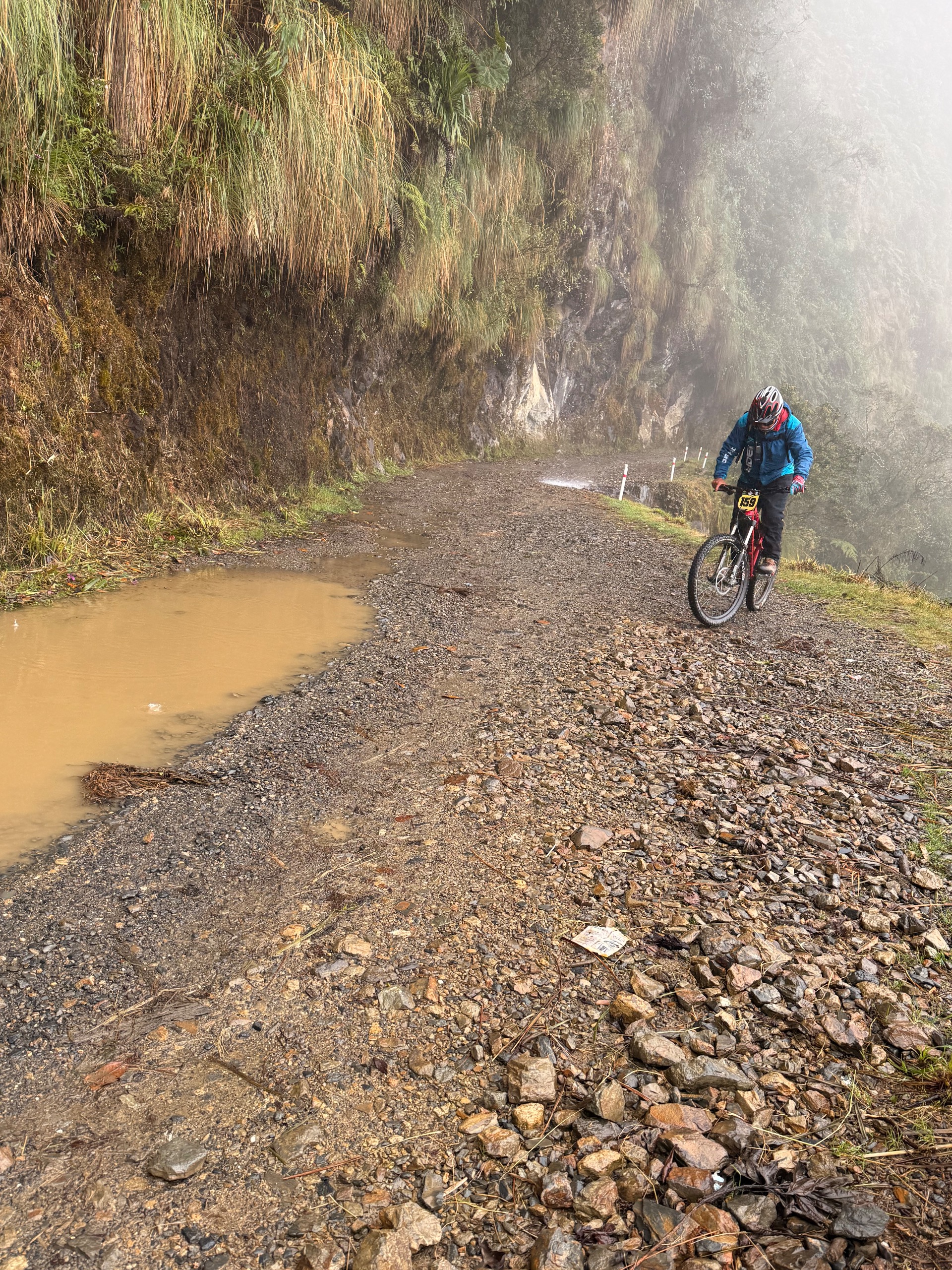 On commence en altitude, à environ 4 700 m, dans un froid piquant et avec la neige pas très loin. Petit à petit, on descend cette route mythique, connue autrefois comme l’une des plus dangereuses du monde à cause de ses falaises vertigineuses et de son étroitesse. Mais à vélo, c’est complètement différent : on profite du paysage grandiose, avec les montagnes andines qui laissent place à une végétation tropicale au fil de la descente.