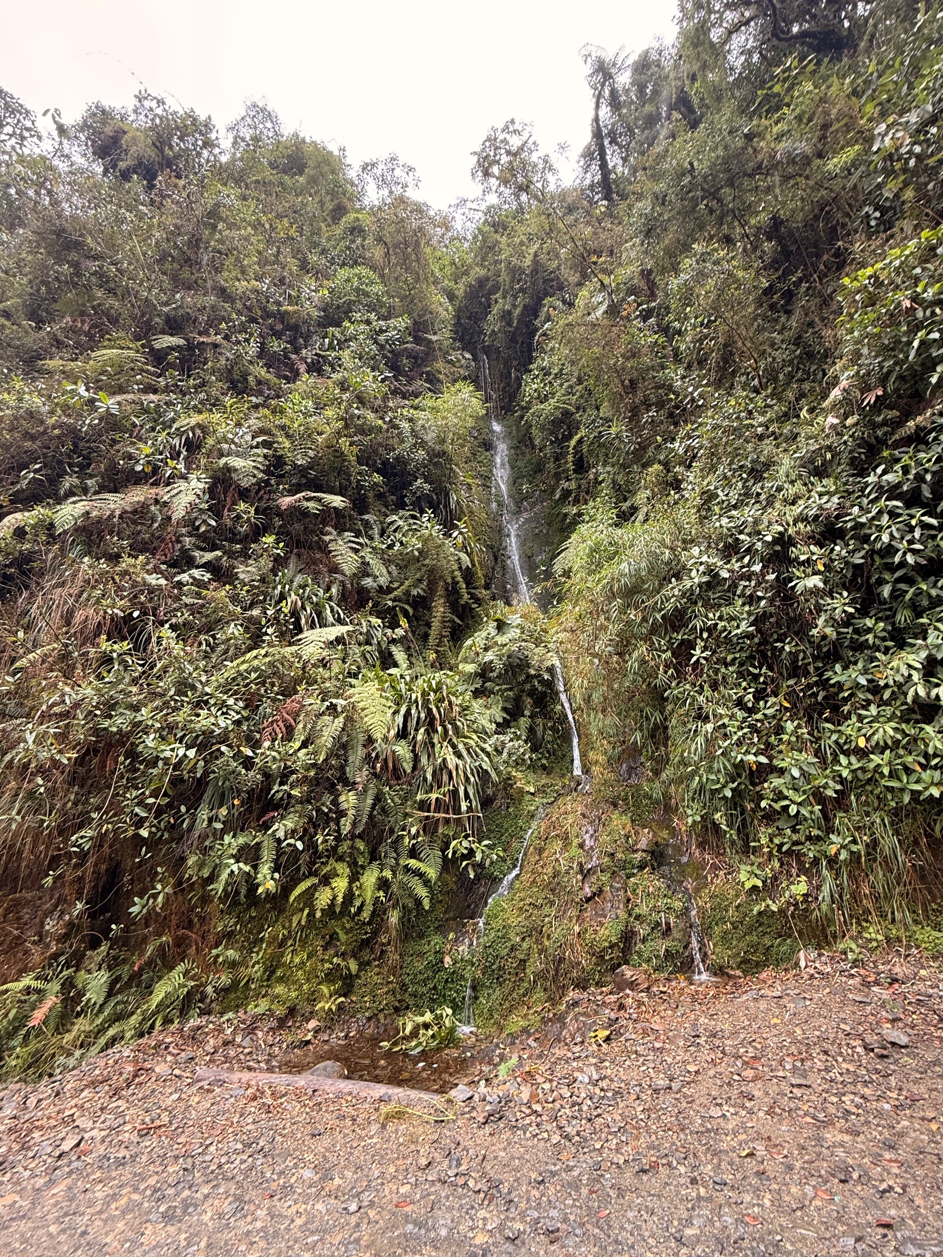 On est passé de l’air glacial des hauteurs aux forêts luxuriantes et humides, avec des cascades qui tombent parfois directement sur la route. C’est impressionnant de voir le changement d’environnement en quelques heures seulement.