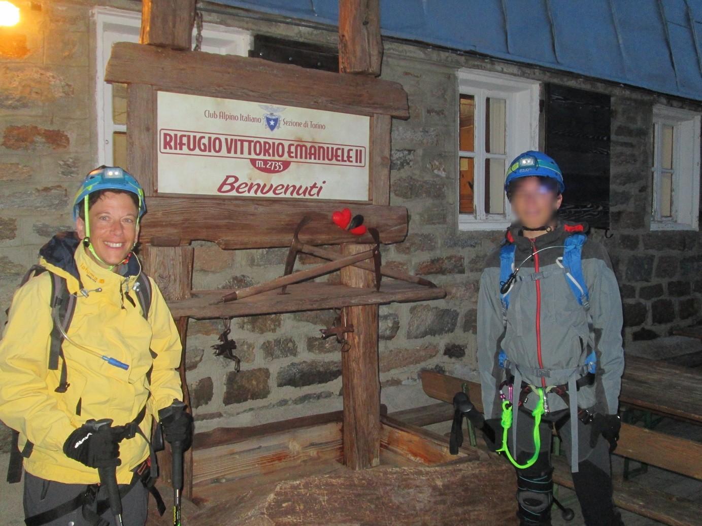 Nous quittons Ailefroide pour 4h30 de route pour rejoindre Valsavarenche et le lieu-dit du Pont (1960 m), puis une montée au Refuge Vittorio Emanuele II situé à 2732 m d'altitude. 770 m de dénivelé et 5 km en 2h10 avec des sacs chargés pour 4 nuits. Le gardien nous a réservé une chambre de quatre au second étage. L'avantage est que nous serons seuls pendant tout le séjour et pourront laisser nos affaires sans craintes puisque ces chambres style "cabines de bateau" ferment à clé. Un confort non négligeable.