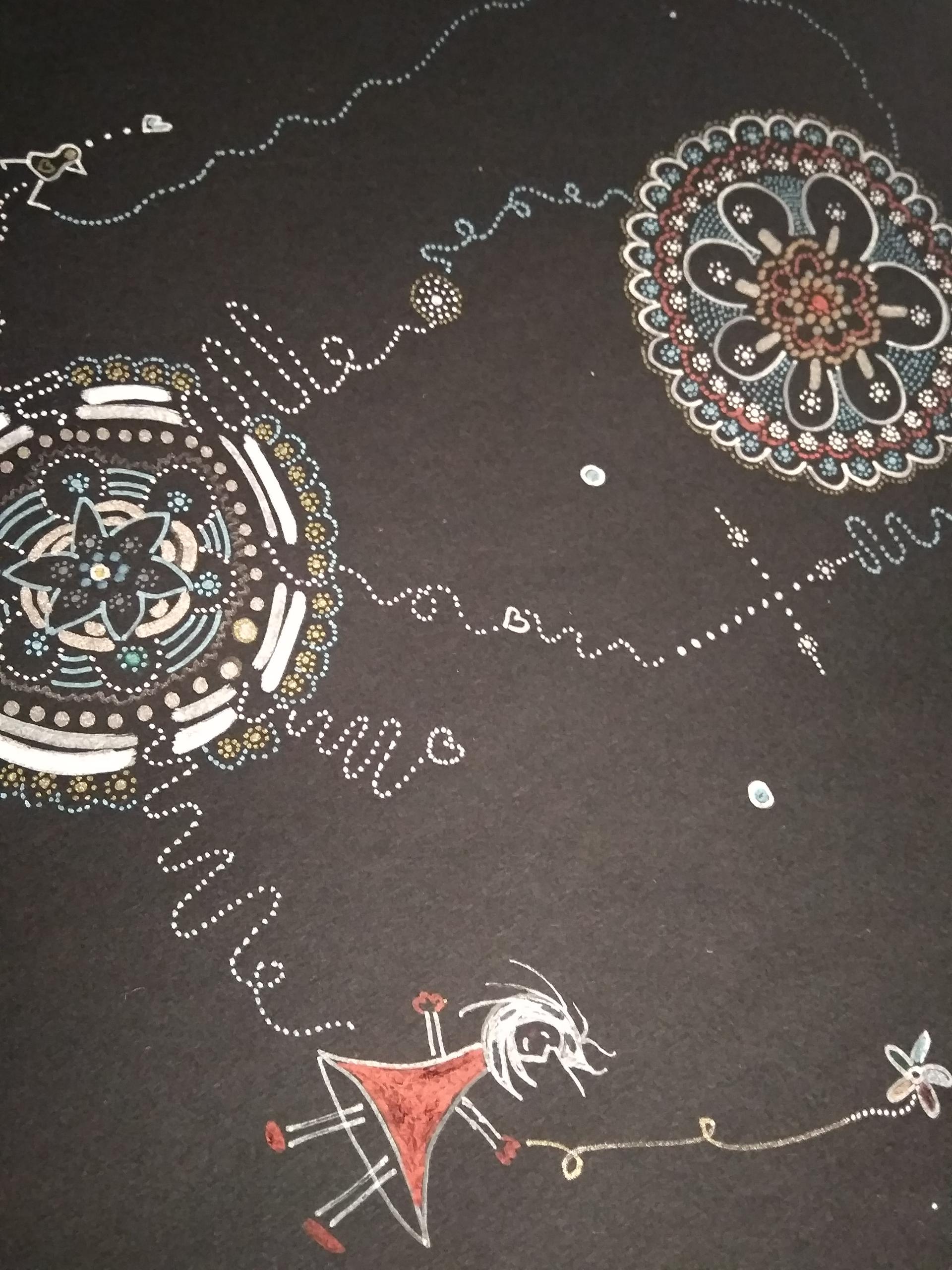 j'ai dessiné pour toi - avec toi - un dessin qui a accompagné les brutales émotions de ta mort (...) - rituels - l'inspiration est improbable - je voulais le dessiner chez toi - je le dessinerais chez moi - l'inspiration est surprenante - tu voulais un dessin avec de la couleur - il est presque fini - je n'arrive pas encore a l'encadrer - ni a le signer - il s'appellera juste BrUnO - il sera chez moi - va savoir pourquoi - je trouve qu'il te va très bien -
