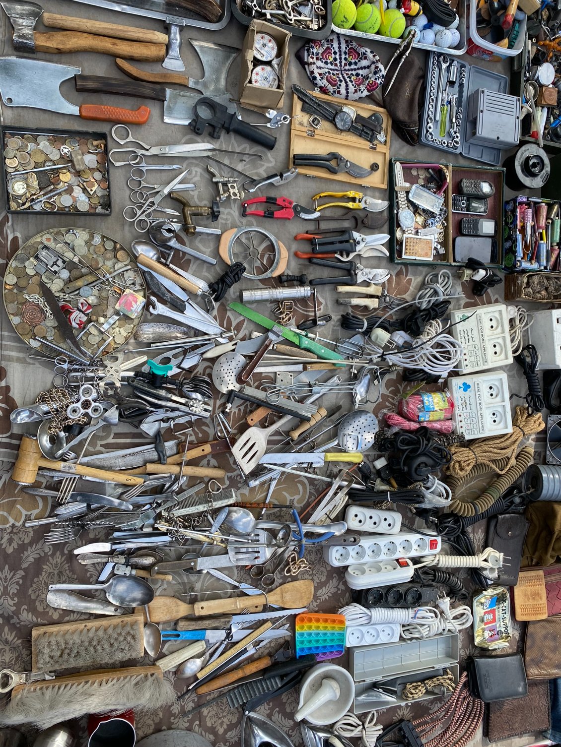 Retour sur les ponts pour prendre quelques photos pendant qu’il n’y a pas encore trop de monde, avant d’aller flâner au marché aux puces, vaste étalage de vaisselle vieillotte, d'uniformes kaki et de vieilles médailles militaires soviétiques, d’appareils photo qui ont peut être servi à des espions du KGB, de vieux disques des Beatles revendus à l’époque au marché noir, de collections de cornes de vaches transformées en services à vodka ("Kantsi) …..