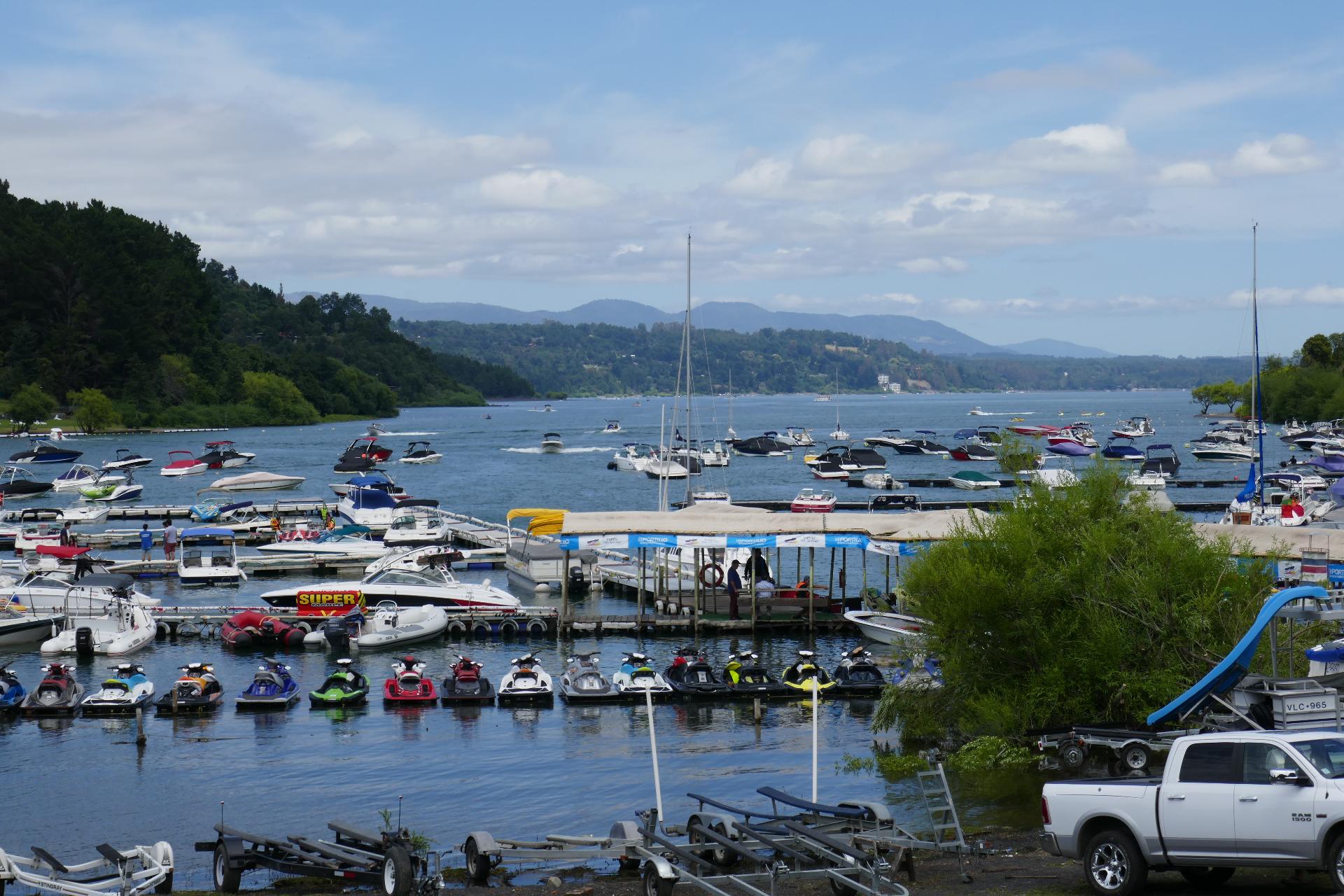 Nous filons vers le lac pour choisir un camping qui nous convient. Arrivés au port, belle rencontre avec un vulcanologue chilien, qui nous fait partager sa passion pour les volcans et nous apprend beaucoup de choses sur les particularités du volcan Villarica (2840 m). Le Villarica fait partie des trois plus grands strato volcans de la chaîne andine et crache chaque jour fumées, cendre et lave. Son ascension permet de voir la lave côtoyer la neige du sommet.