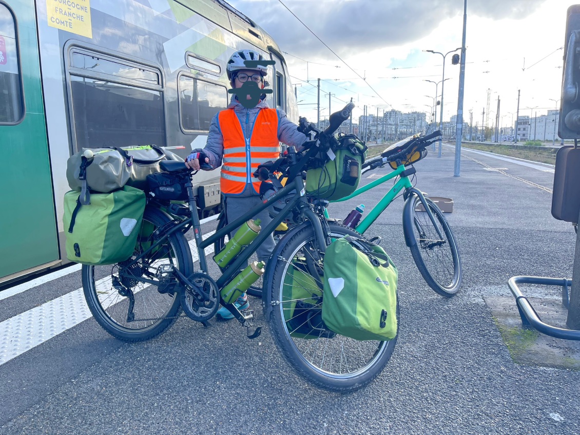 Gaël, huit ans, est aguerri au cyclotourisme depuis ses trois ans. Il m’accompagne, moi, sa grand-mère pour deux voyages chaque année. L’un au printemps, l’autre en automne et, très souvent, durant la première semaine lors de mon voyage annuel au long cours.