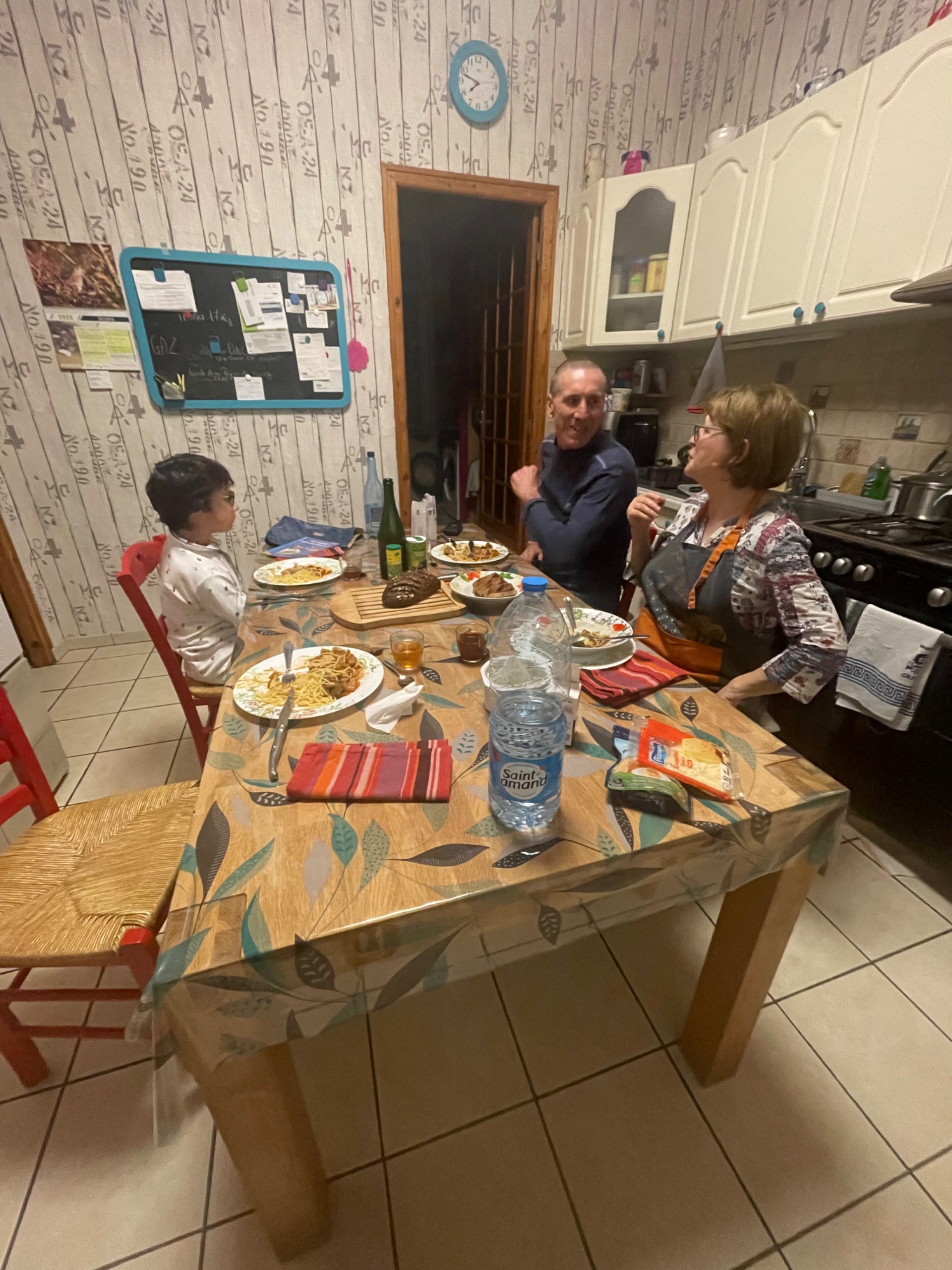 Les échanges sont faciles, comme si nous étions des amis de longue date. Gérard, très patient, joue de nombreuses parties de babyfoot avec Gaël. Je suis ébahie devant la dextérité de Michèle. Un morceau de tissu et le voici transformé en objet utilitaire, une décoration ou un vêtement. Michèle est une vraie cheffe cuisinière. Nous le constatons lors du dîner.