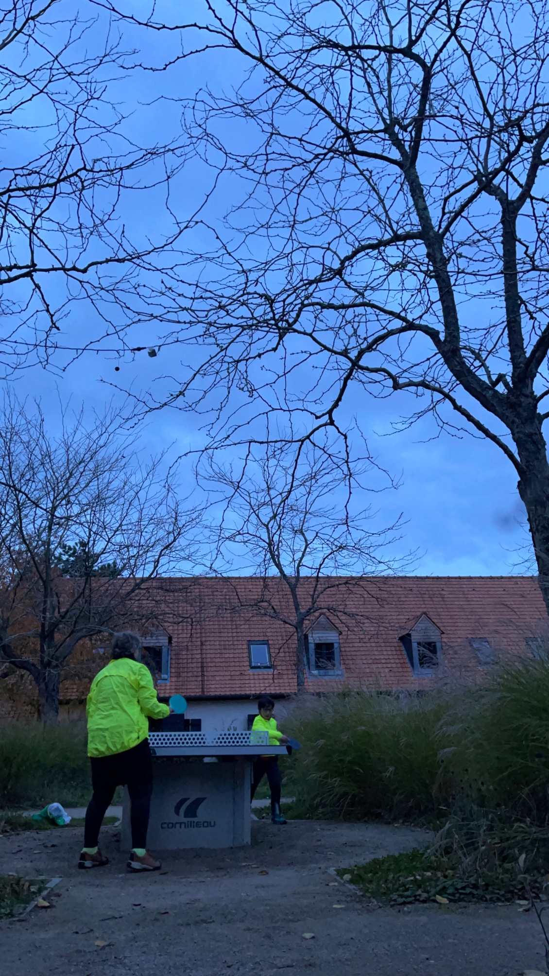 Sitôt arrivés à l’hôtel, Gaël se précipite pour emprunter le matériel et jouer au tennis de table. De nuit, dans le froid, sous une pluie fine, nous sommes les seuls clients de l’hôtel à jouer dans le jardin. Gaël est l’unique enfant à l’hôtel et nous sommes aussi d’insolites voyageurs à vélo séjournant dans cet incroyable hôtel aux multiples jardins.