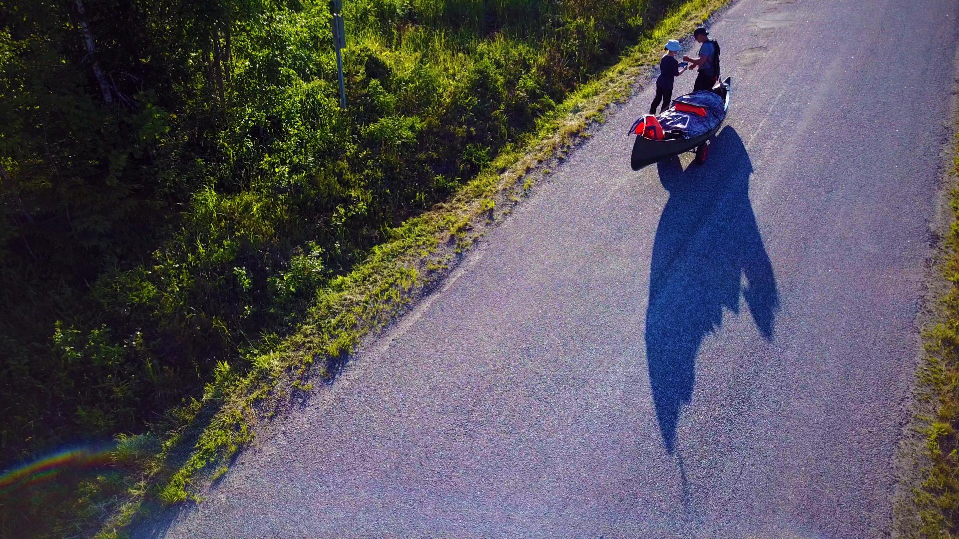 So it's in a t-shirt that we start this portage that will end in the dark.