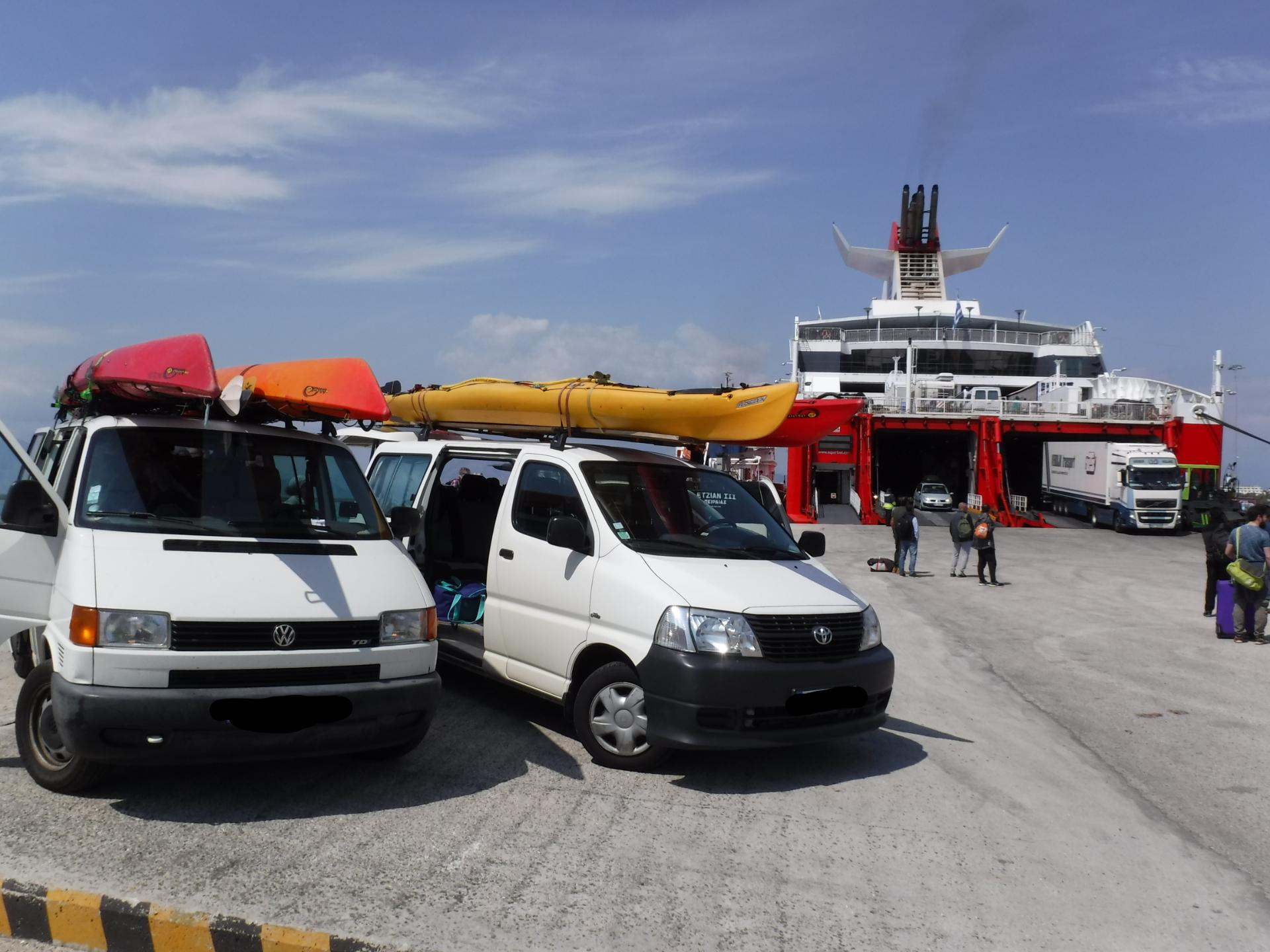 Au programme, Besançon > Ancone en VW pour Patrick, Malou et nous deux, et Joël/Nadine avec Dom/Babeth avec le HIACE. 950km d’autoroute, suivis d’à peu près la même distance en ferry, soit une vingtaine d’heures de bateau jusqu’à PATRAS. Il nous faudra encore trois ou quatre heures d’autoroute pour rejoindre la banlieue d’Athènes et quatre heures de ferry pour atteindre Milos. ouf!