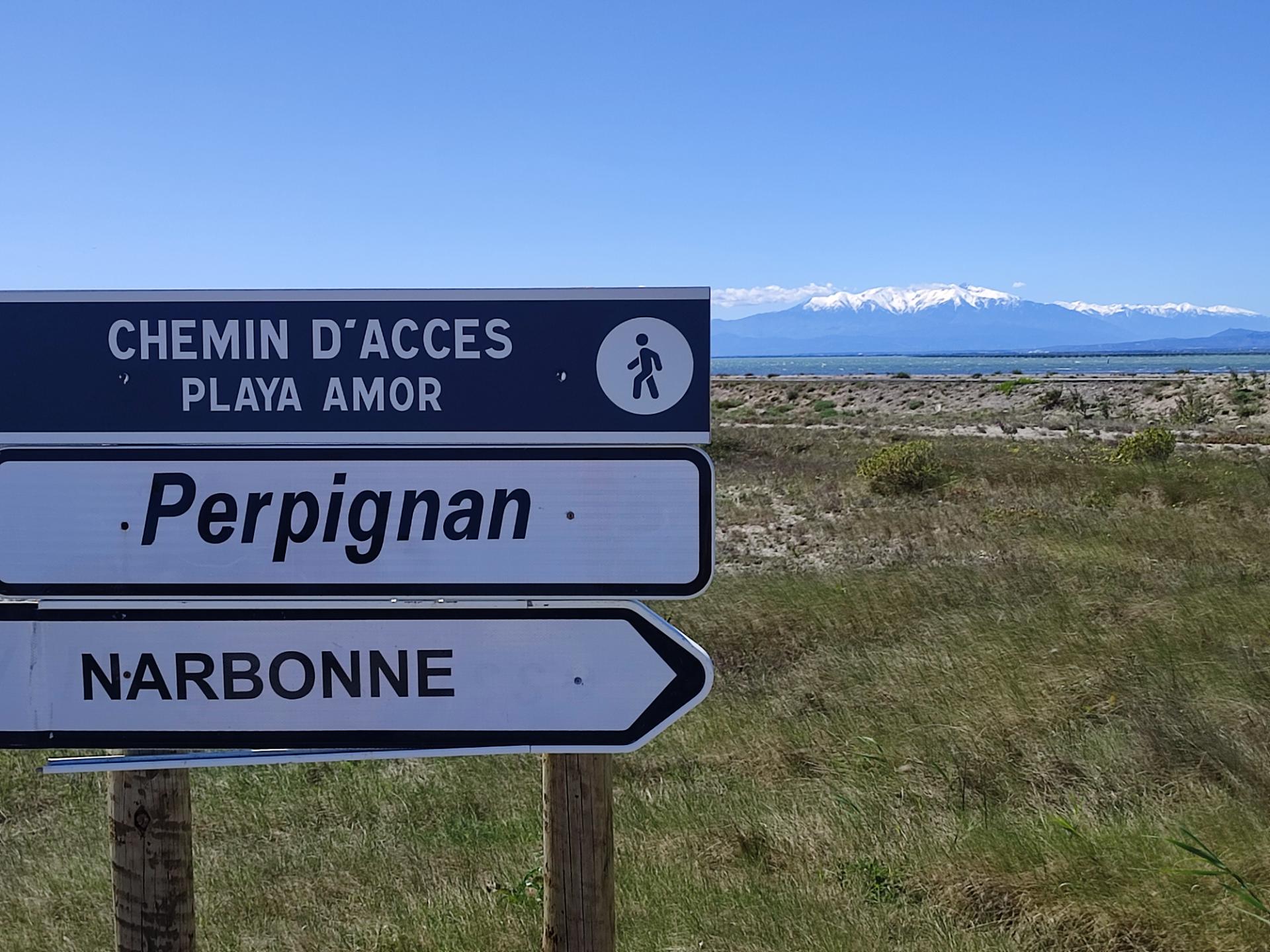 Passé Argelès, le dénivelé se calme mais le vent prend le relais — et il est évidemment de face. Saint-Cyprien, Canet-en-Roussillon, Barcarès où je m'accorde une barquette de fraises et une pause déjeuner steak-frites au bord de la plage. Le ventre chargé, je repars avec toujours ce vent dans le nez.