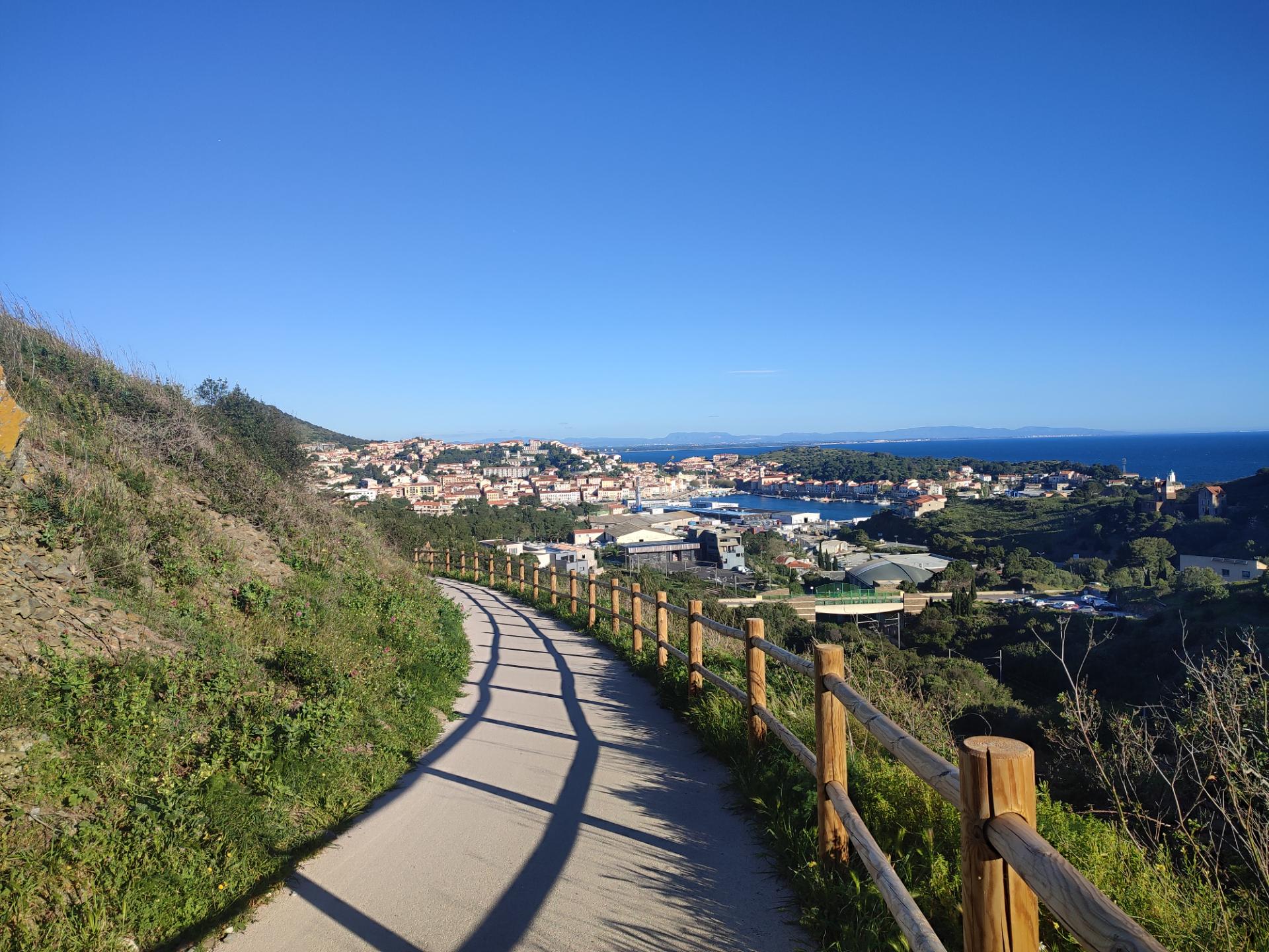 Je passe Port-Vendres puis Collioure, où je prends le temps de longer le château royal à pied. En remontant sur le vélo, je traverse le petit marché avant une nouvelle montée d'un kilomètre à 6,4 % pour quitter la ville. À ce stade, quatre côtes de 4ème catégorie sont déjà dans les jambes, et seulement 10 km au compteur.