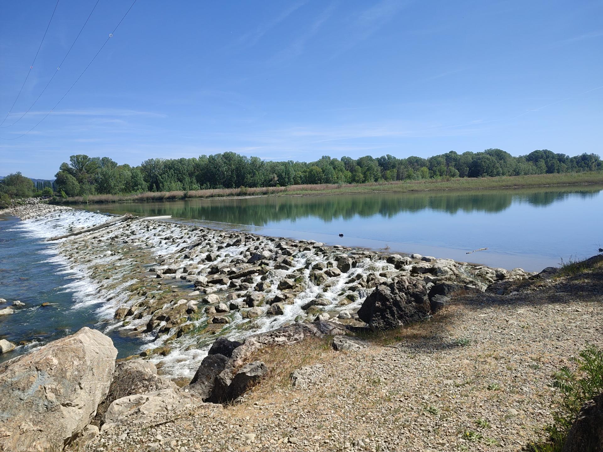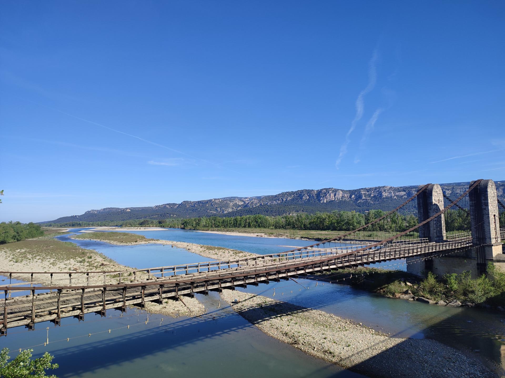 À Mallemort, traversée de la Durance. Puis remontée progressive en longeant le canal EDF jusqu'à Meyrargues pour le ravitaillement. C'est là qu'arrive l'incident du jour : en voulant décadenasser le vélo, l'antivol lâche au niveau de la serrure. Petit détour obligé pour en racheter un, suivi d'une pause burger et glace prolongée — la flemme de repartir est réelle.