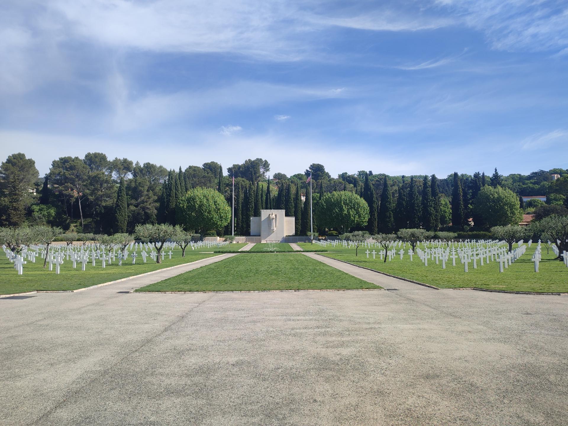 En traversant Draguignan, je passe devant le cimetière américain. Des rangées de croix blanches impeccablement alignées, dans ce paysage provençal. Un moment saisissant, inattendu sur un parcours à vélo.