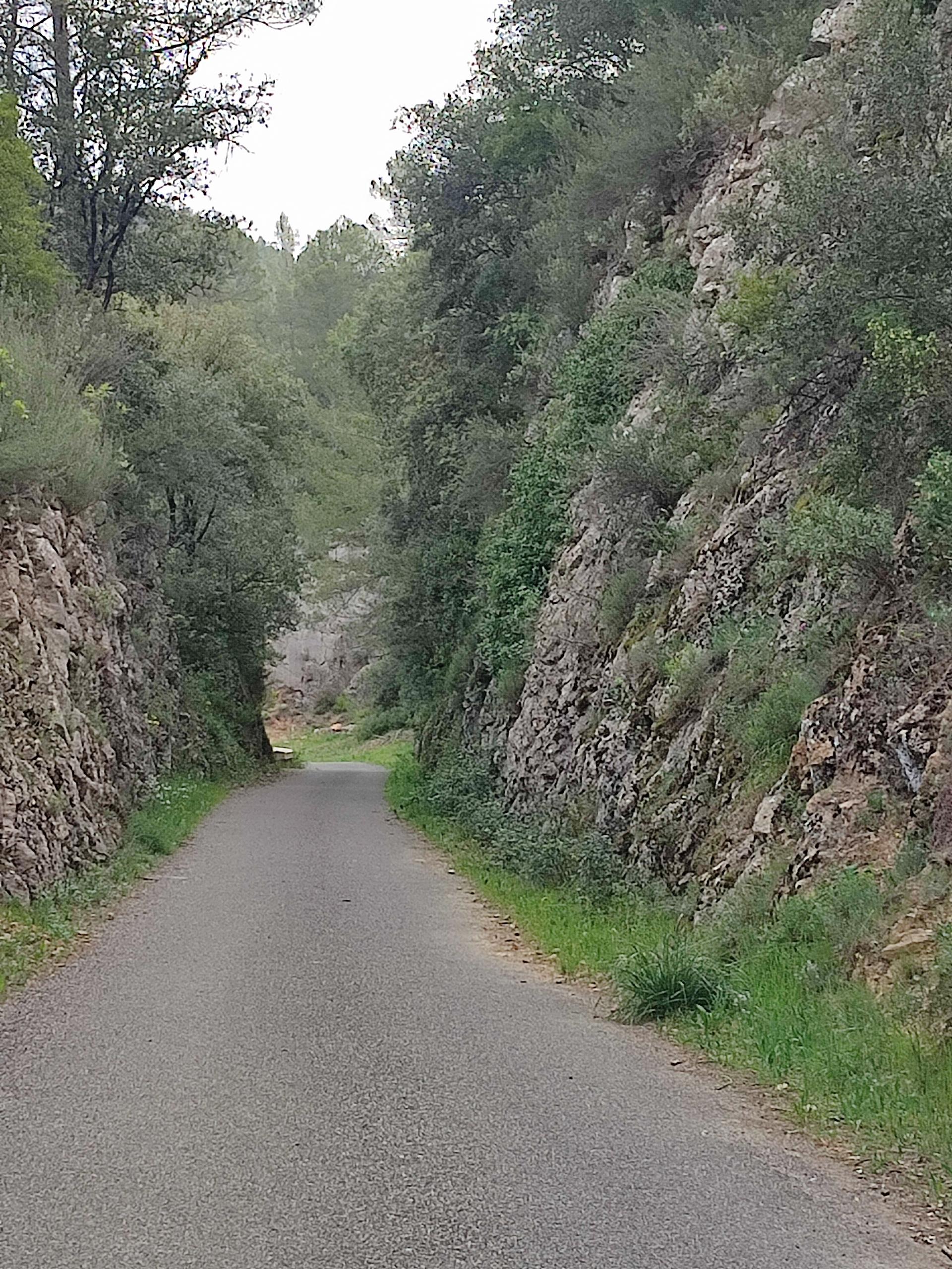 La mise en jambes est directe. Jusqu'à Argelès, le dénivelé est au programme. J'avais tracé un itinéraire pour rejoindre l'Euro-Vélo 8 en évitant les routes, mais la réalité du terrain s'impose rapidement : chemin de randonnée raide, étroit, rempli de caillasse. Le pied à terre s'impose dès les premiers kilomètres. Le but est de faire du vélo, pas de le pousser.