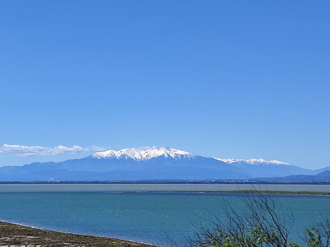 Le Canal du Midi va être le fil rouge de la journée. Les chemins sont roulants, le vent dans le dos pour une fois, et je double une ribambelle de bateaux au fil des écluses. J'en profite pour contempler une dernière fois le Canigou, le Carlit et les sommets de l'Andorre encore enneigés au loin.Je passe Capestang, puis un détour s'impose avant Colombiers pour apercevoir l'étang de Montady et son remarquable système de drainage en cercle, véritable curiosité hydraulique médiévale. Béziers se profile, et juste avant d'y arriver, les écluses de Fonseranes permettent aux bateaux de franchir 21m de dénivelé sur 310m à peine — un spectacle d'ingénierie.