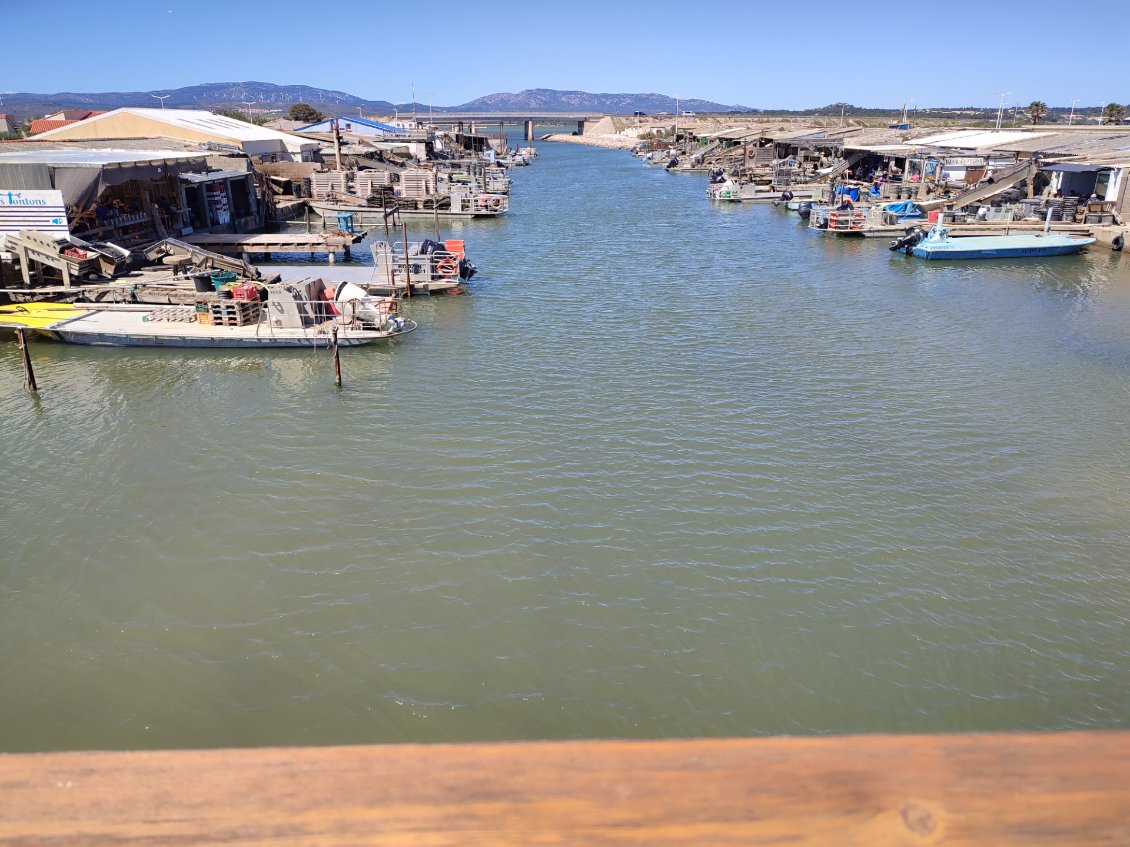 Je remonte vers Aigues-Mortes puis suis le canal du Rhône à Sète. Il y a du monde à vélo sur ce tronçon — je n'ose pas imaginer la cohue en pleine saison. La chaleur tape fort, l'appétit aussi. Pause carbonara au restaurant du Pont à Gallician, puis reprise sur les petites routes entre canal et étang du Charnier, là où les carpes frayent et les voitures se font rares.