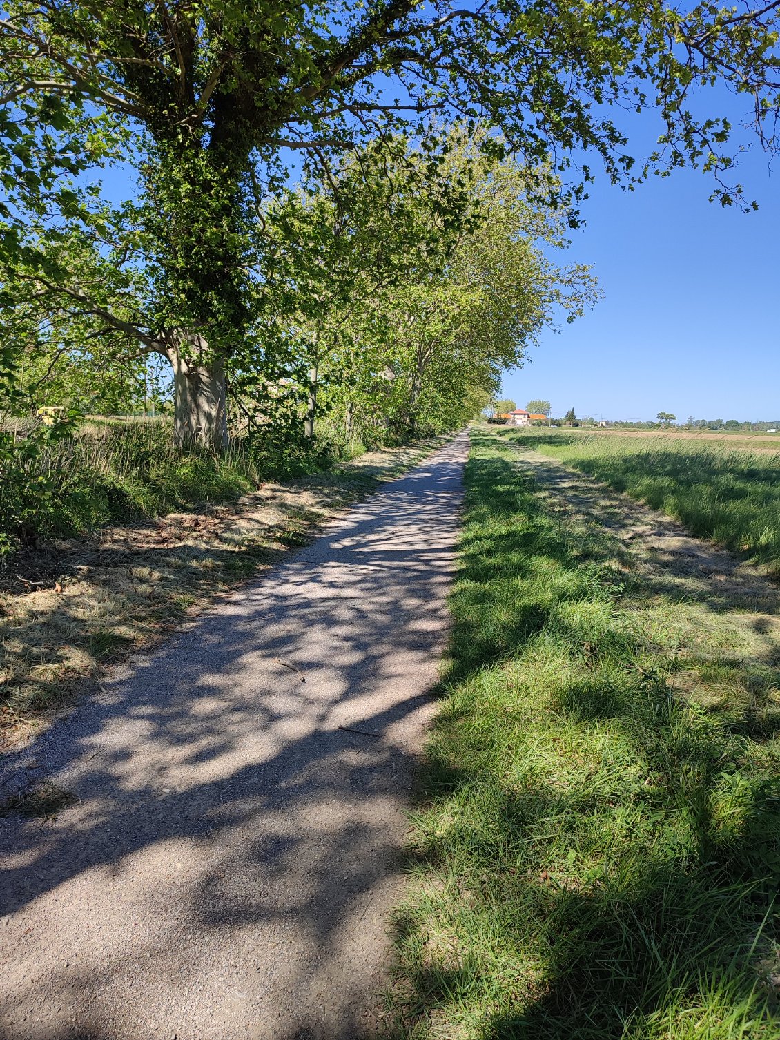 Petit-déjeuner pris, montre déclenchée à 8h pile. Premier objectif : sortir de Narbonne. Plus facile que d'habitude — il suffit de suivre le canal de Robine. Je le longe jusqu'au pont de Moussoulens, puis je prends les chemins jusqu'à Sallèles-d'Aude avant de rejoindre le Canal du Midi à hauteur d'Argeliers.