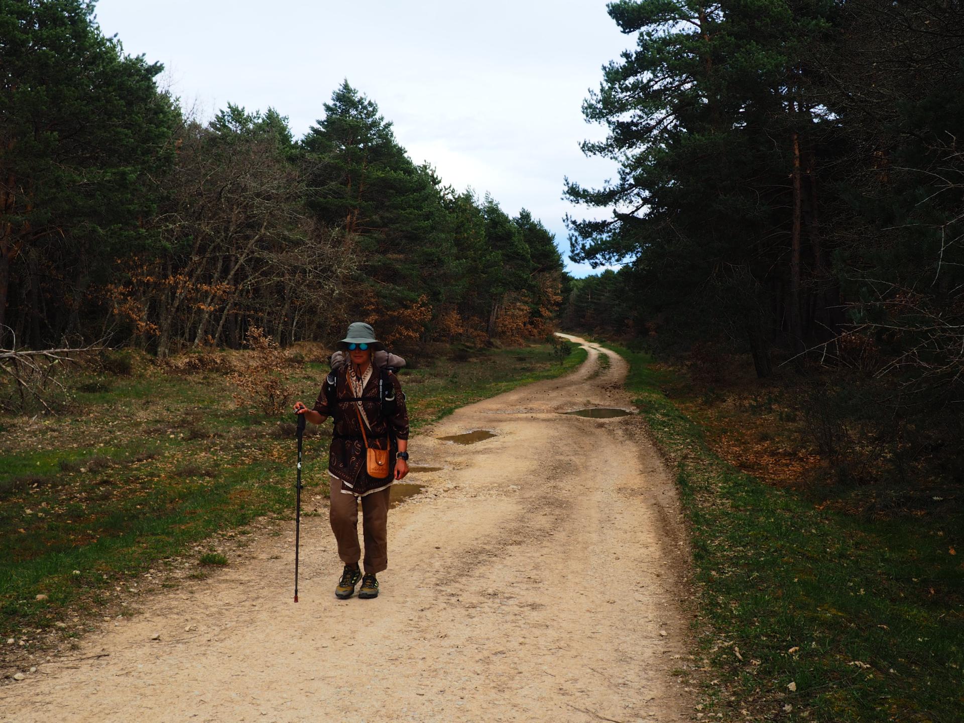 Cet après-midi, on passe un petit col à 1 140 m avant de redescendre vers San Juan de Ortega. Le coin est joli, les forêts superbes — mais la nationale n’est jamais bien loin. Difficile de se connecter à la nature. Comme si on n’arrivait pas à couper le cordon. Jamais vraiment libres. C’est une sensation étrange.