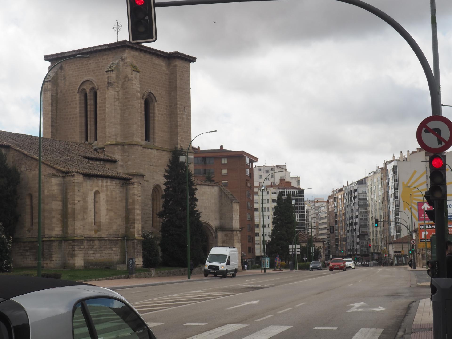 À la sortie d’Atapuerca, on attaque un petit col à 1 082 m, avalé sans peine sous une pluie fine mais tenace. De l’autre côté, on traverse Cardeñuela Riopico, Quintanilla Riopico, puis Orbaneja Riopico. L’enfer s’accentue : la pluie cesse, mais la route longe l’aéroport. Les voitures, les camions, le vent de face… mes tympans me font souffrir. La civilisation approche. La ville.