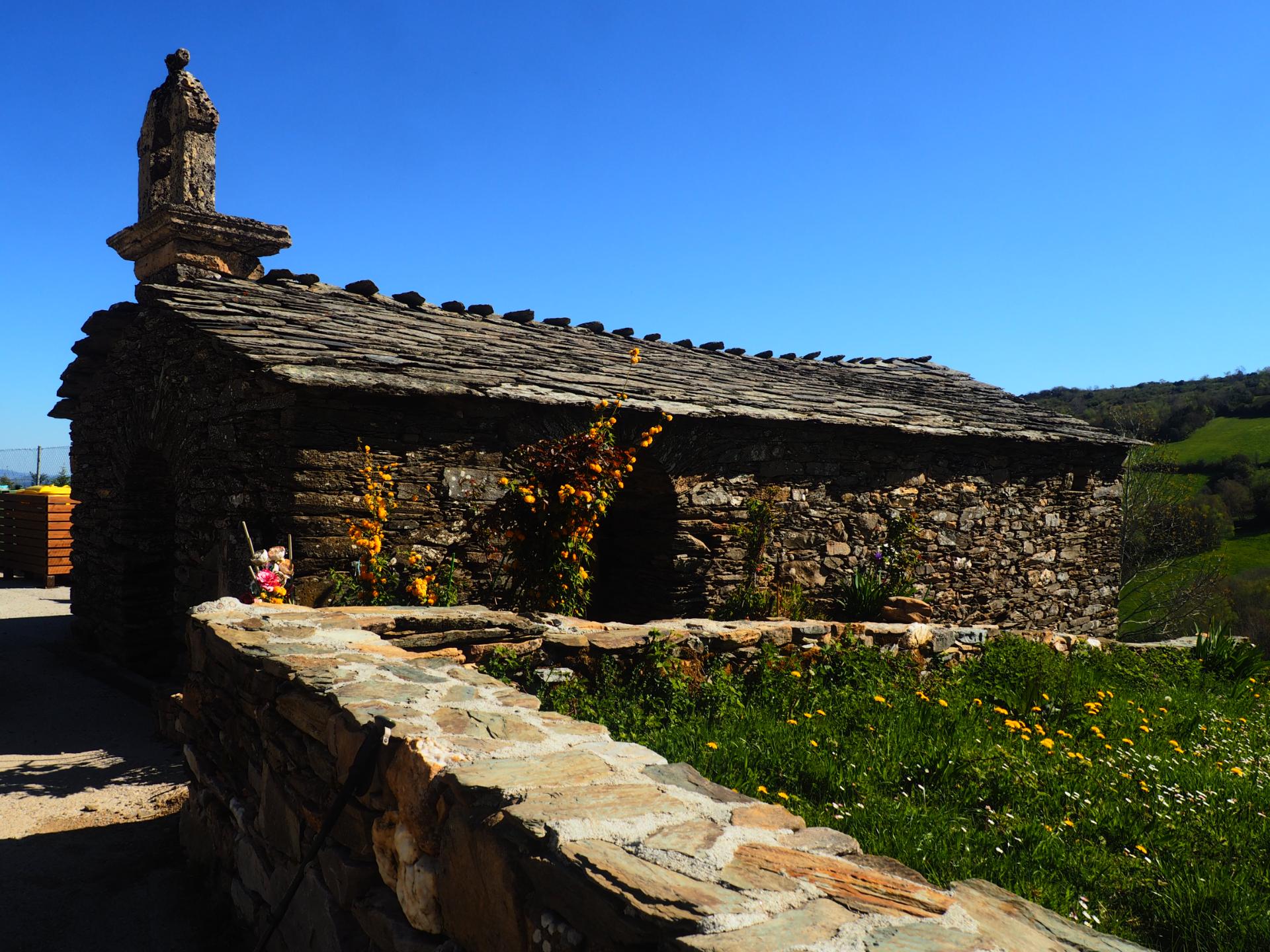 Le paysage devient de plus en plus vert et humide, la Galice se rapproche à grands pas. À Villafranca del Bierzo, on fait un détour par la plaza mayor, puis on enjambe le río Burbia par un vieux pont médiéval. Des églises, des chapelles, il y en a partout… mais la plupart sont fermées. Plus grand monde pour s’en occuper, j’imagine.