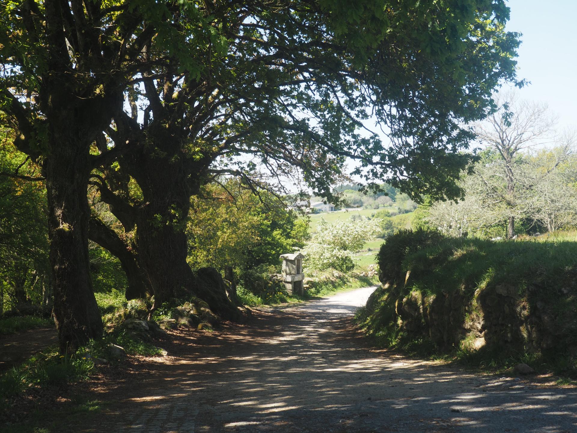 En fin d’après-midi, le chemin se fait plus calme : la plupart des pèlerins ont fait escale. Une fenêtre pour marcher tranquille. On part tard le matin, donc on peut traîner un peu plus le soir, l’inverse du pèlerin classique, disons-nous.