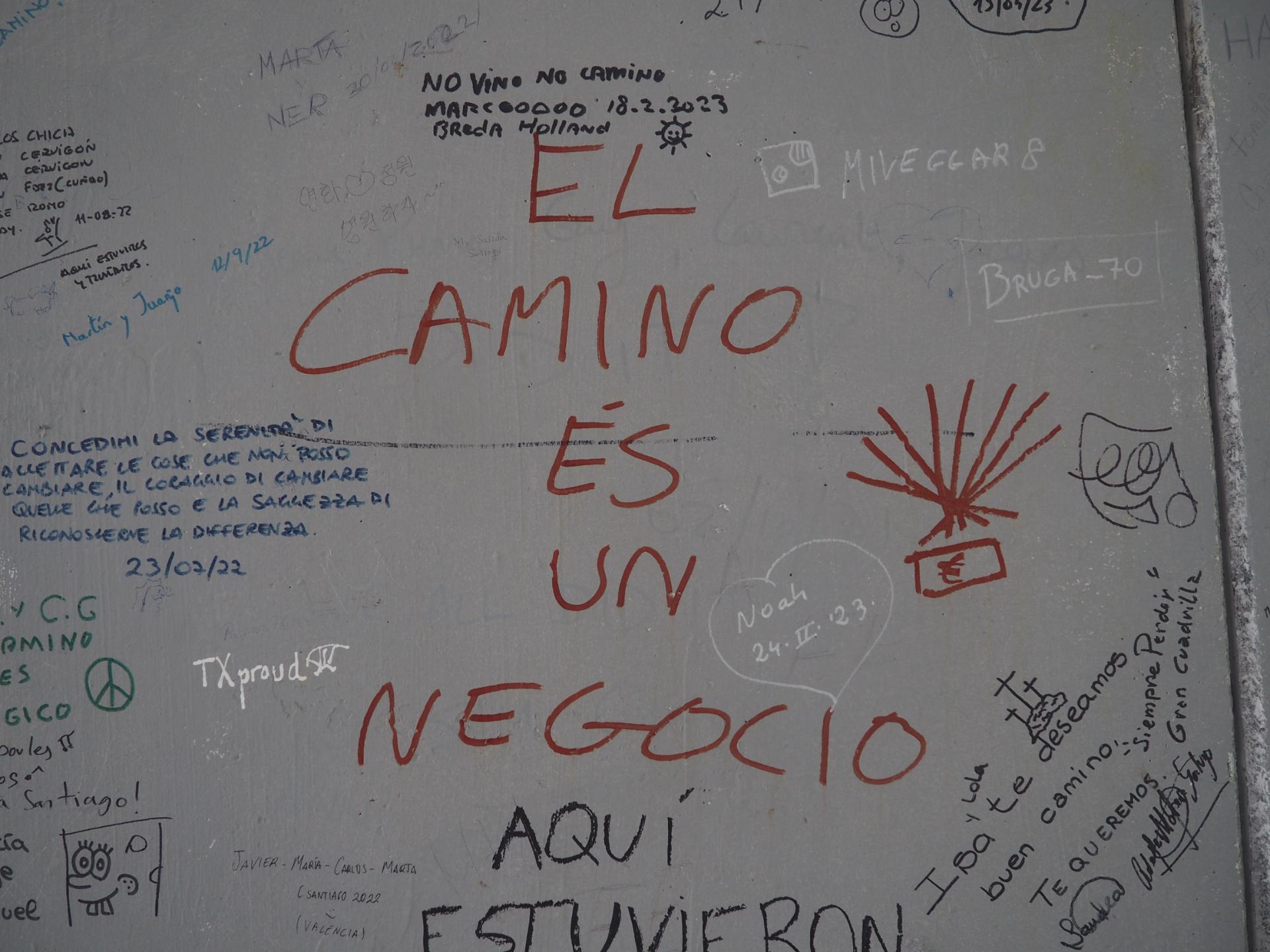On ne crache quand même pas sur une part de tarte aux amandes de Santiago, une spécialité délicieuse. Mais qu’on ne vienne pas me dire que le Camino Francés n’est pas un chemin commercial, hein. Et j’ai comme l’impression que ça ne va pas s’arranger.
