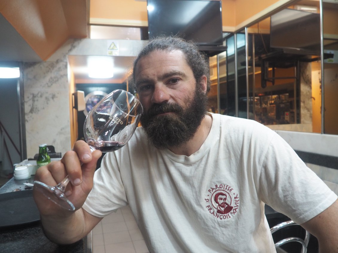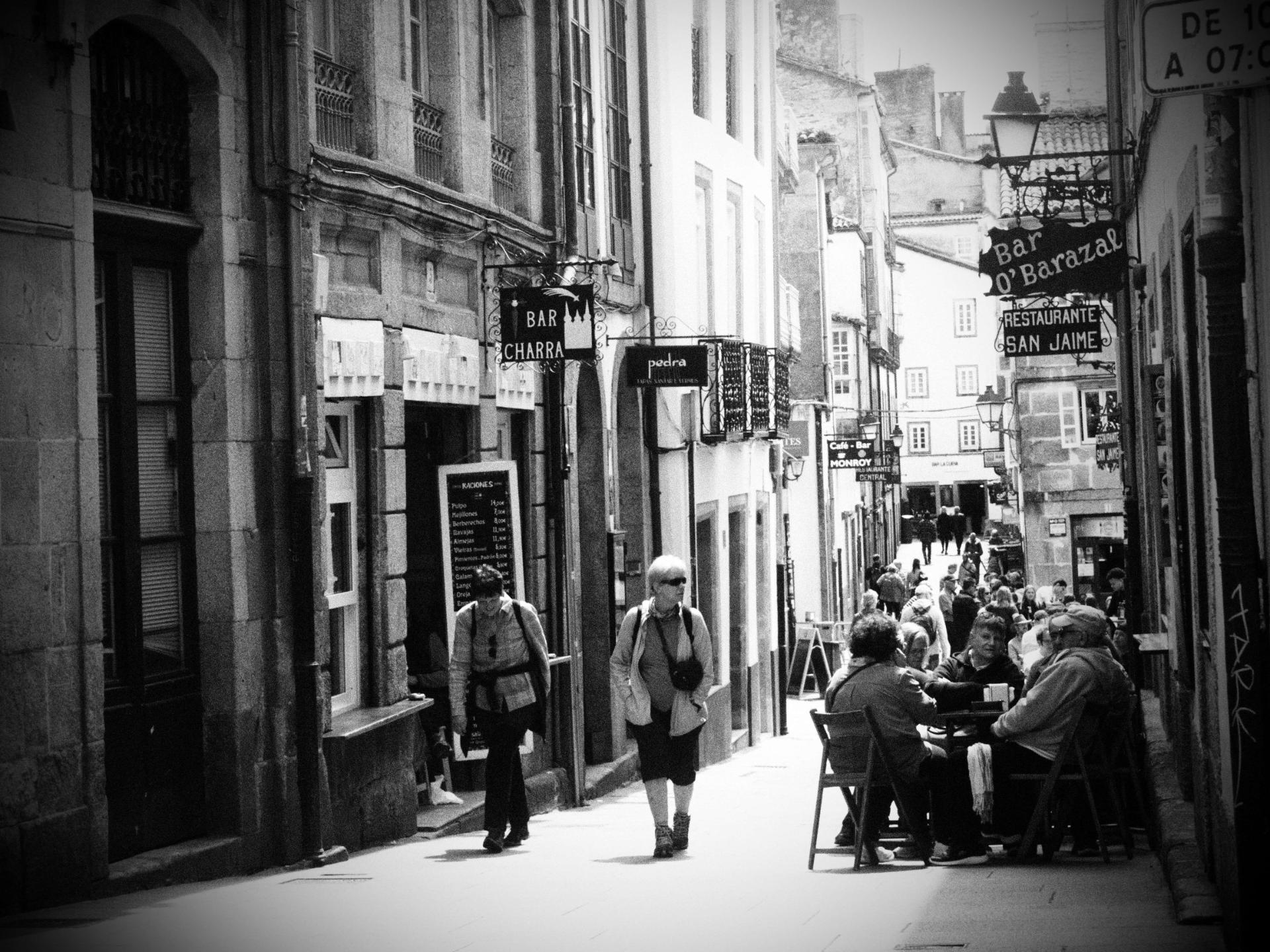 Après ce moment intense, on se perd dans les ruelles de la vieille ville, à la recherche d’un troquet pour porter un toast. On tombe sur un bar typique, comptoir à tapas, et un tenancier plutôt sympa : bonne pioche. Il nous sert quelques bonnes bouteilles et nous fait goûter un breuvage local, un Ribeira Sacra, que l’on savoure avec respect.