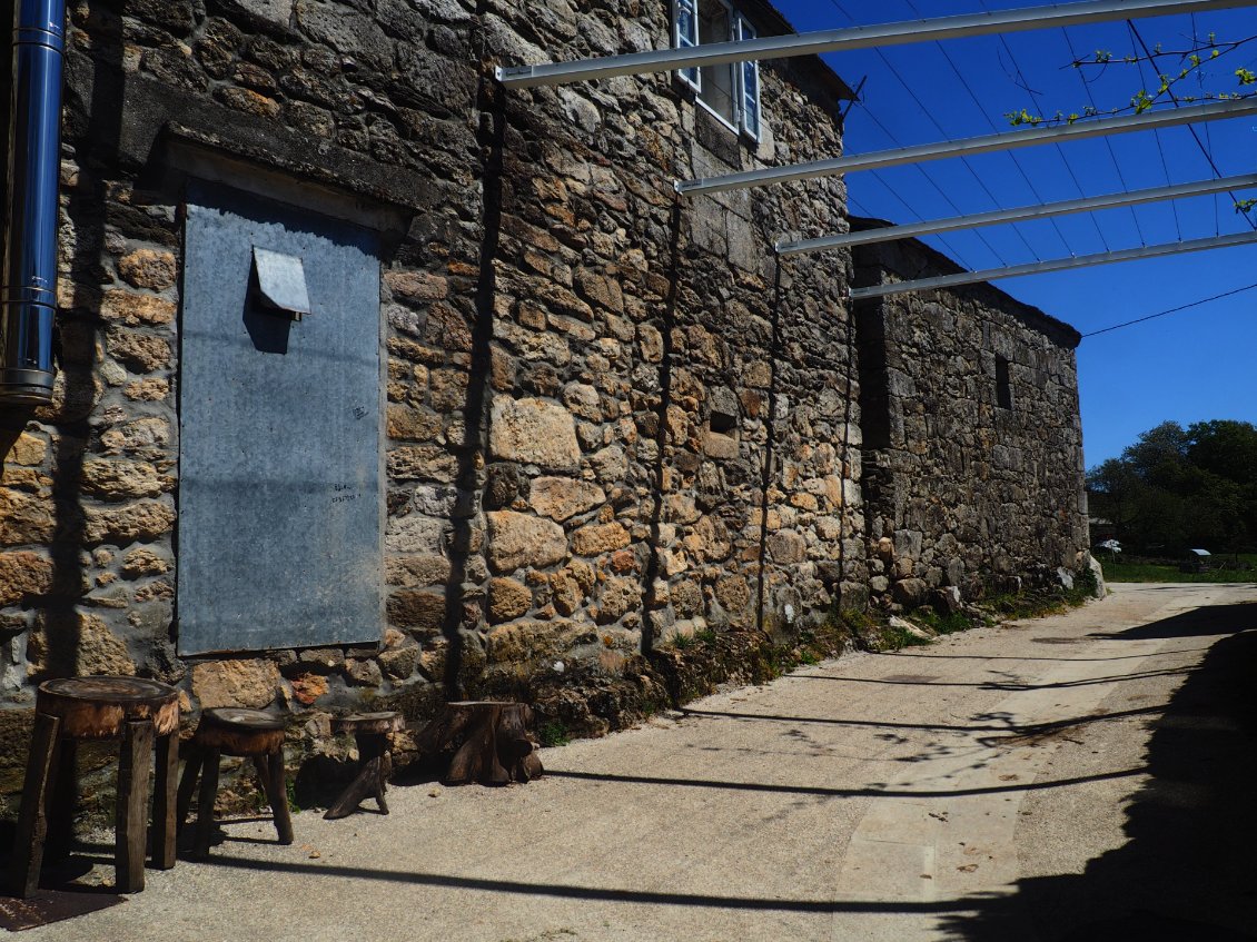 Un homme vient à notre rencontre : Eduardo, une trentaine d’années. C’est le proprio. Il sort de son atelier où il travaille le bois, fabrique colliers, bracelets et autres bricoles. Il a fait le Camino quelques années plus tôt, après avoir vécu longtemps en Jamaïque. Il est tombé amoureux du coin et a acheté cette ancienne maison de curé, l’église est juste derrière. Il propose quelques chambres, et à manger/boire aux pèlerins, en échange — ou non — d’une participation. Le vrai esprit du donativo.