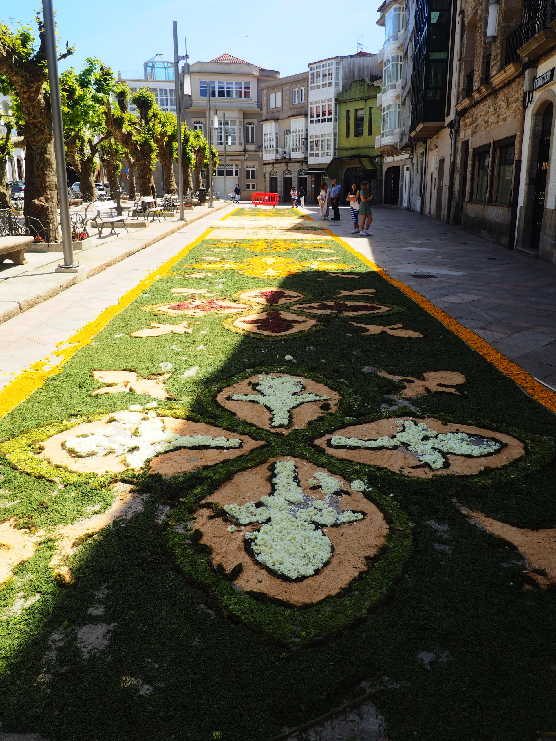 L’ambiance est joyeuse, tout le monde semble réuni pour l’occasion. D’immenses fresques de fleurs ornent le sol des petites placettes.