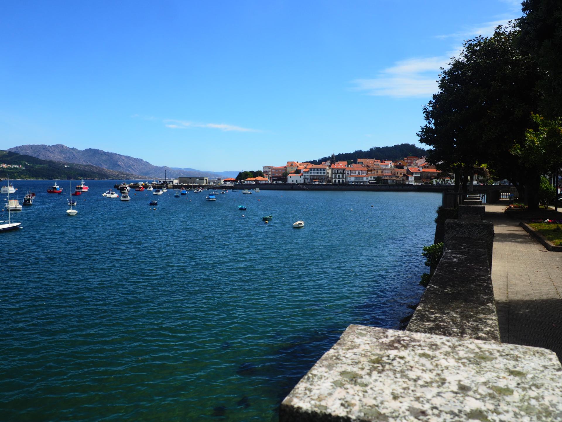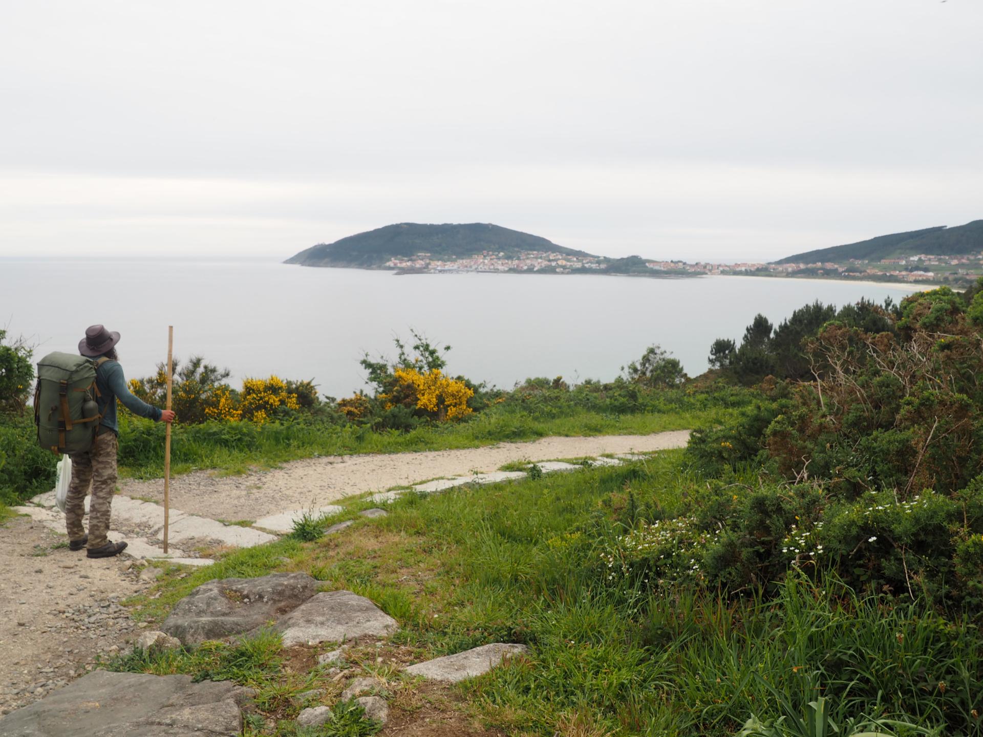 Un nouveau panorama s’offre à nous. Cette fois, l’océan est tout proche. En contrebas, la ville de Cee, et tout au bout, un phare — certainement celui de Fisterra, le km zéro. Ça y est, on l’a en ligne de mire, mais ce n’est pas encore pour tout de suite.