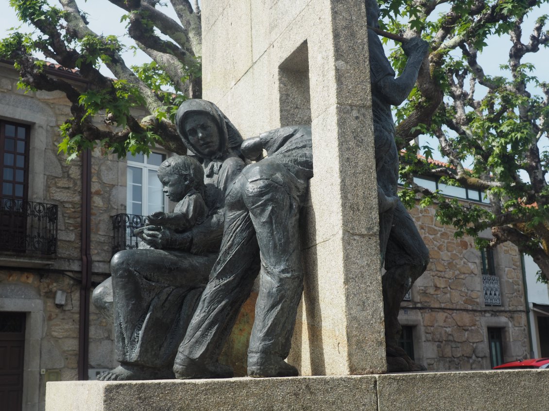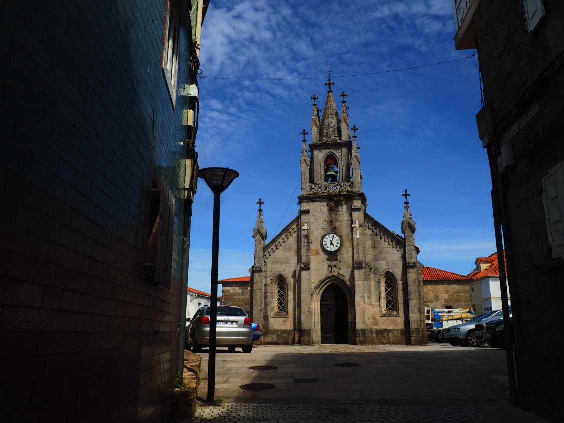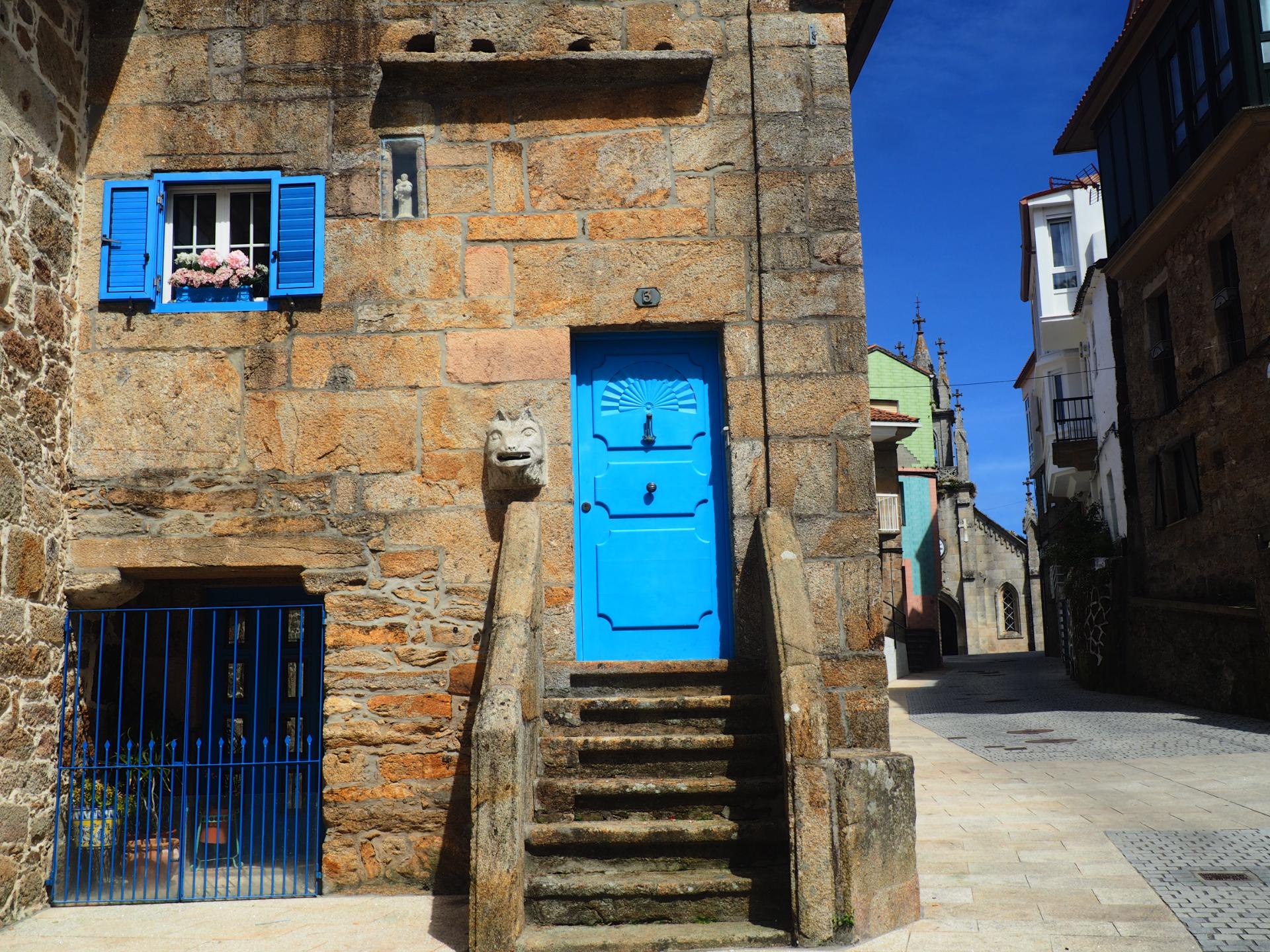 On arrive sur le fabuleux Ponte Maceira, un pont médiéval du XIVᵉ siècle qui enjambe la rivière Tambre, où viennent se casser quelques petites cascades. Le coin est paisible : certains lisent au soleil sur les rochers, d’autres se baignent dans les vasques naturelles. Autour du pont, une petite chapelle, un vieux moulin à eau, et quelques maisons en pierre restaurées avec soin, grandes portes en bois, balcons en fer forgé… Un petit air de maison de maître au bord de la rivière. On a l’impression que le temps s’est arrêté ici. Un décor de carte postale.