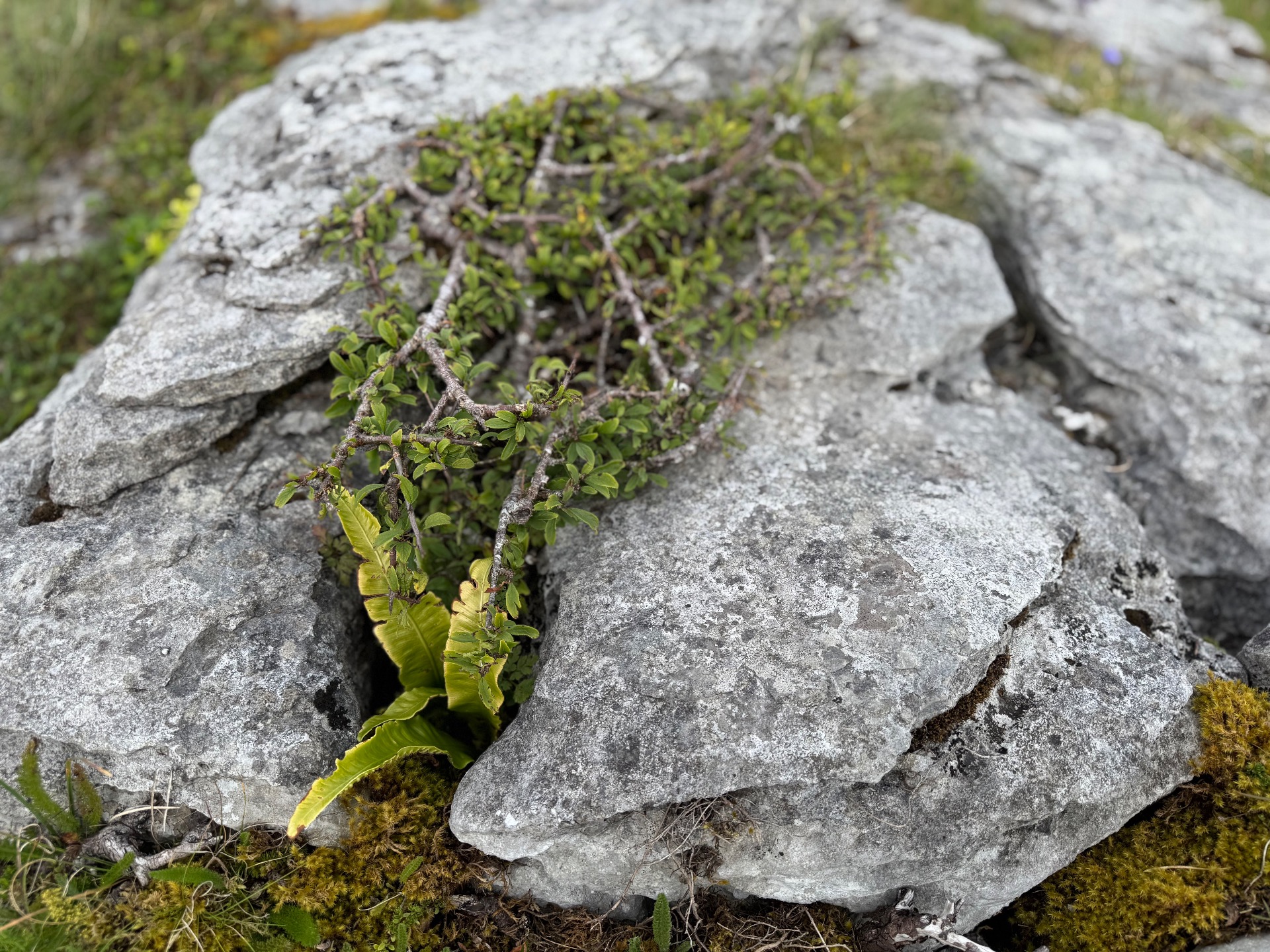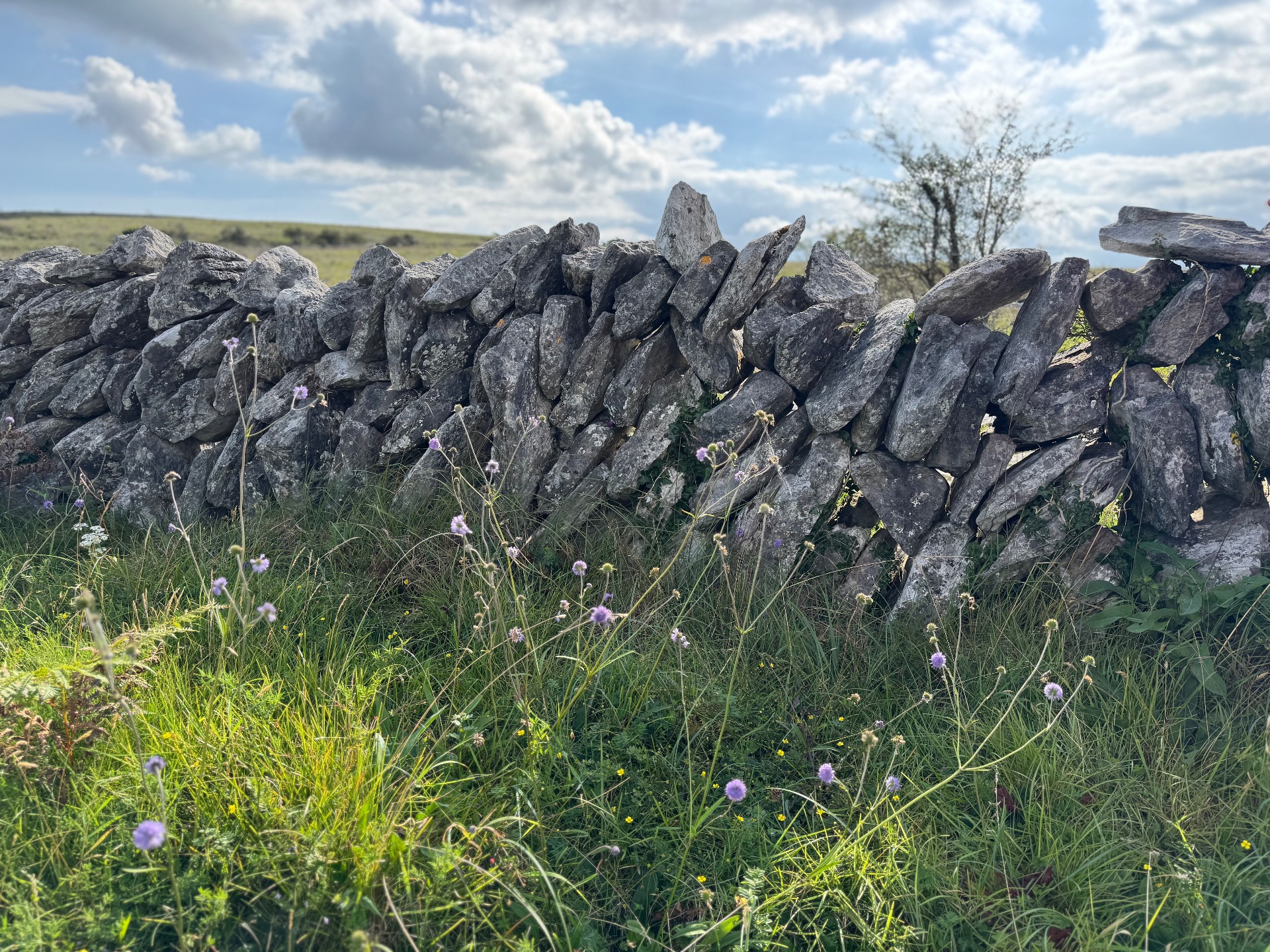 On poursuit notre route avec un peu d’impatience de voir les collines de Burren. Après une montée sur une route encaissée dans les buissons où il est difficile de croiser une voiture, nous découvrons un point de vue panoramique splendide. Nous descendons et cheminons à travers ces collines de pierre. Arrivés au camping on a une petite suée car il est affiché : fermé vendredi samedi pour réservation privée. Ouf on est dimanche et bien accueilli.