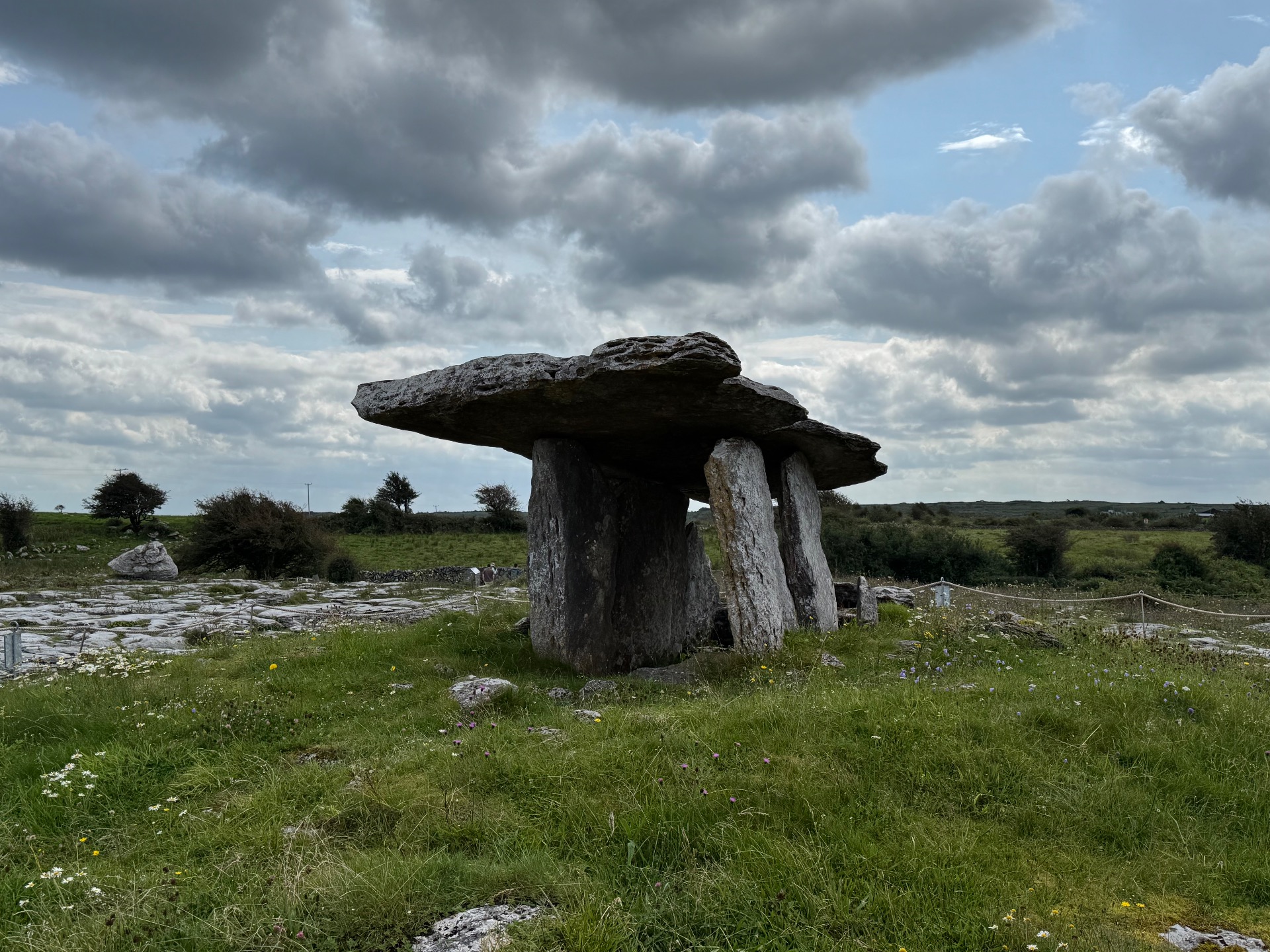 A Lidoonvarna on tombe sur un rassemblement de bikers. Il s’agit du Motorcycle Fest de Doolin qui dure 3 jours et se termine aujourd’hui. Il y a la queue à l’unique épicerie qui fait aussi café à emporter. Nous visitons Poulnabrone Portal Tomb, c’est une sorte de dolmen dans un site particulier qui date de l’âge de bronze.