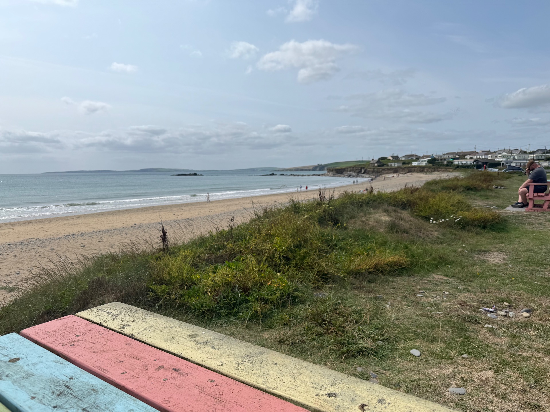 Petit déjeuner façon irish breakfast. Départ vers 9:15, et pour s’échauffer on attaque par une côte. On traverse les quartiers résidentiels avant de se retrouver sur des routes très fréquentées. On emprunte une route type nationale. Bien qu’il y ait une zone cyclable, elle n’est pas protégée et ce n’est pas très rassurant, surtout que cela continu de monter. On finit par rejoindre des routes plus petites mais le trafic est toujours dense, et sans voie cyclable. Comme nous l’avons lu par ailleurs, les Irlandais respectent et attendent pour nous doubler en laissant un espace de 1,50m. Les seuls à ne pas le faire sont généralement des étrangers. Nous faisons un stop à Kinsale. Charmant village au fond d’un havre (où d’un aber?) avec des boutiques très colorées. Ambiance balnéaire même si la plage n’est pas à côté.