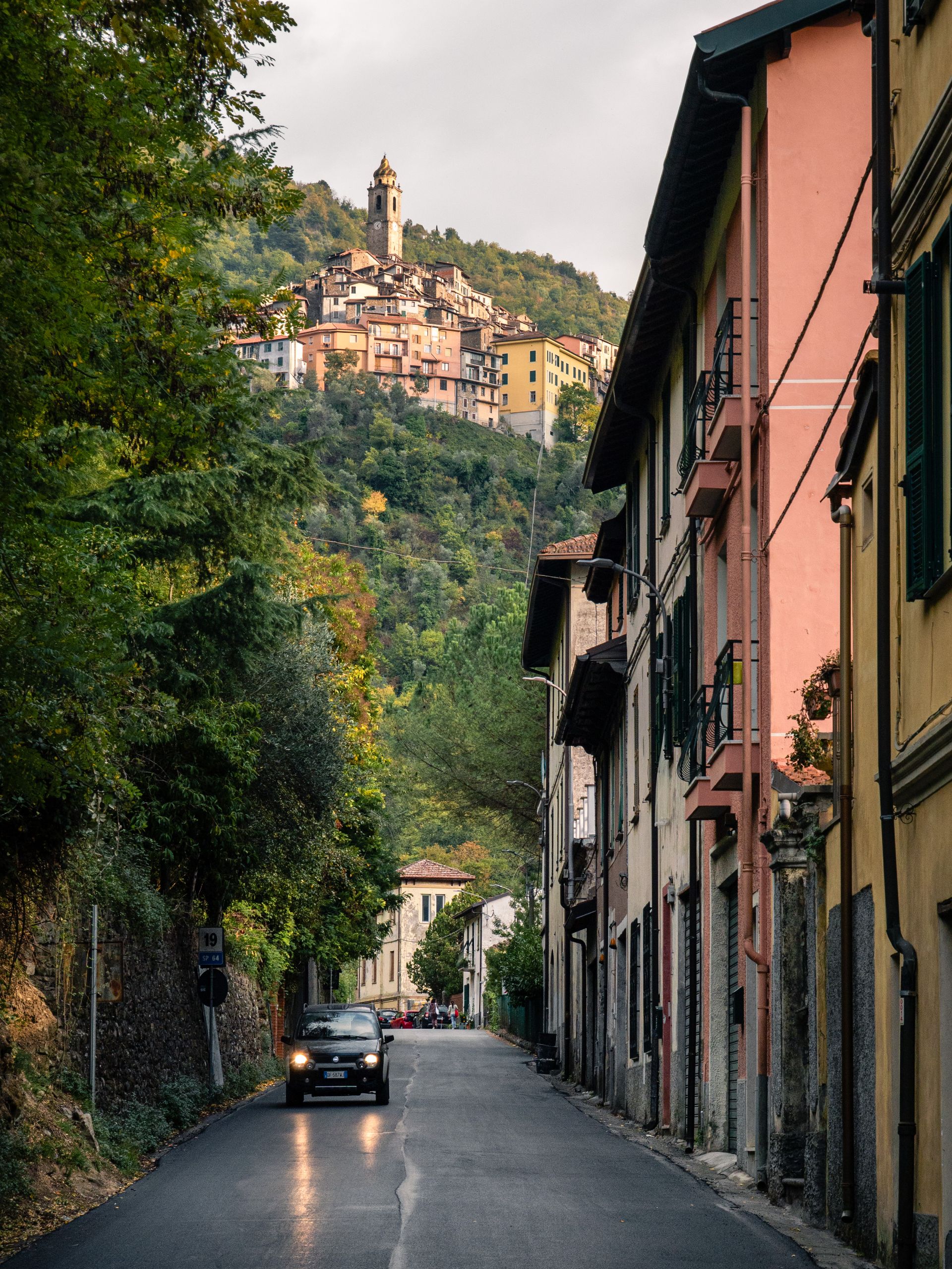 Dernier point bas, très proche du niveau de la mer. Là-haut, la frontière franco-italienne culmine à 2000 mètres. Les calculs sont vite fait, même Kévin y arrive : ça va monter. Pigna est le dernier village au pied de la difficulté. C’est aussi le dernier village italien que je devrais croiser, alors je dois faire honneur à la gastronomie italienne dont j’ai tant vanté les mérites. Escale sucrée à la gelateria, savourée sur la place du village, animée par les discussions entre anciens du village. Leur bras s’agitent en rythme avec l’accent chantant, dans une symphonie de geste et de voyelle à faire pâlir un chef d’orchestre. Diantre, je n’y comprends pas un mot mais je suis le débat avec ferveur, comme une finale de coupe du monde. Ventre plein et sourire aux lèvres, j’enquille la montée déterminé comme jamais à dormir le plus haut possible ce soir.