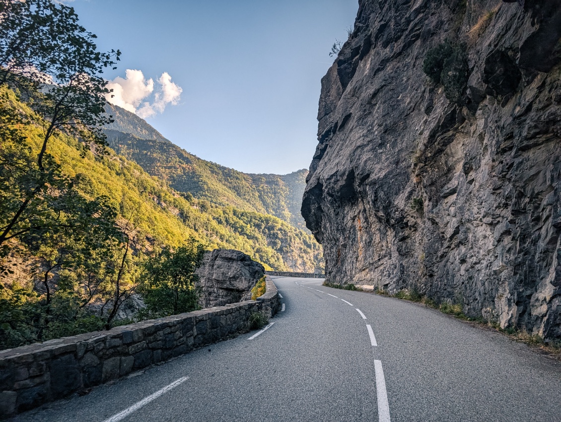La Tinée. Ou plutôt "Voldemort". La vallée dont on ne doit pas prononcer le nom, et où l’on a encore moins envie de poser les roues. C’est si encaissé que la brise s’y engouffre à coeur joie, si bien qu’on a l’impression de monter dans les deux sens. Bref, c’est interminable comme deux fois l’infini. Mais la météo du lendemain de demain me sert de coup de pied au cul, je débranche le cerveau et remonte ce long faux plat hypnotique.