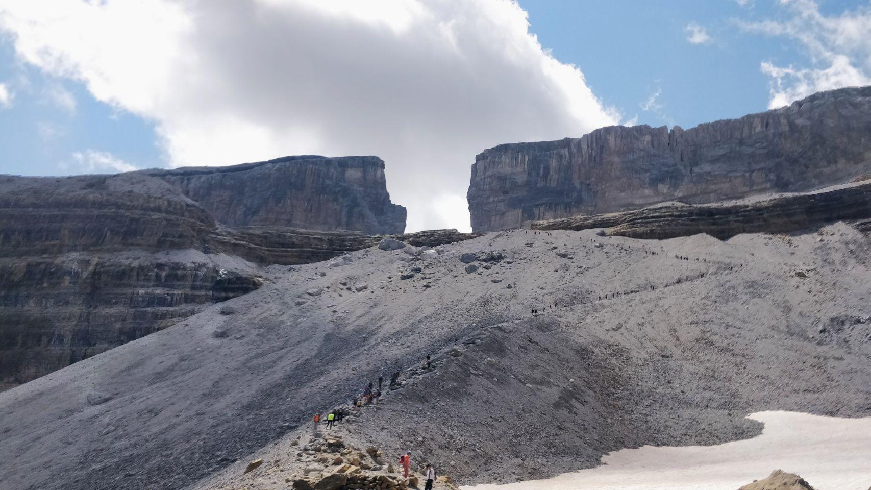 Pour s'en assurer, nous décidons de monter jusqu'à la base de la brèche. 🪨 Encore un beau dénivelé sur un chemin caillouteux et parfois difficile d'accès surtout avec le nombre de randonneurs. Arrivés en haut, nous pouvons admirer l'immensité des Pyrénées espagnols. ⛰️