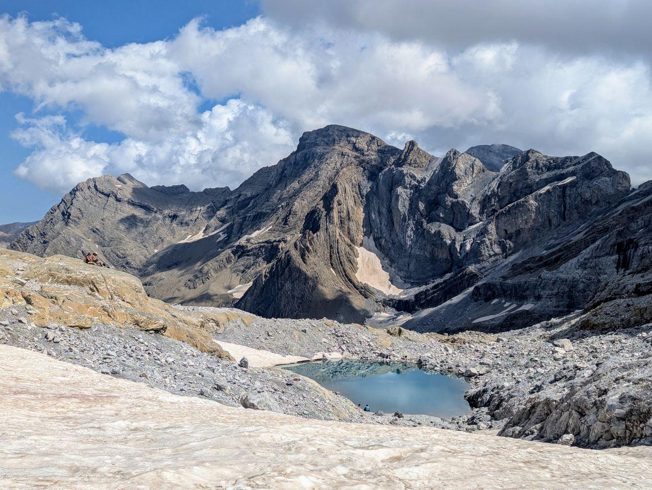 Le début jusqu'au col du Port de Boucharo est très simple et même goudronné sur le début du chemin. 🇫🇷🇪🇸 Ce col marque la frontière Franco-espagnole donc nous croisons de nombreux espagnols sur la randonnée. La suite de la randonnée se complexifie petit à petit. ⛲ Après environ 2 km sur un chemin classique nous devons traverser un torrent/cascade. Ensuite, la pente devient plus difficile jusqu'au col des Sarradets. Chacun va à son rythme. Avec la chaleur et l'altitude, c'est parfois compliqué de trouver l'énergie. 🪫 Et il faut aussi se faire sa place avec tous les autres randonneurs.
