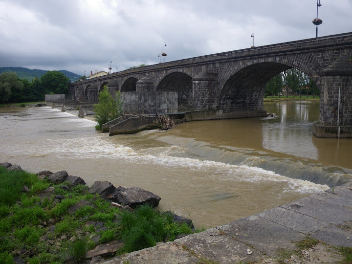 Chilhac ==> St Ilpize = 14,3km. Une digue à la sortie de Chilhac qui se passe plutôt vers la droite. Une autre au pied du château de St Ilpize, passée presque inaperçue avec ce niveau d’eau.
