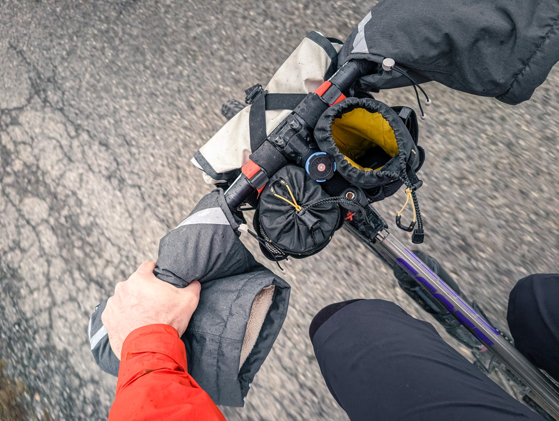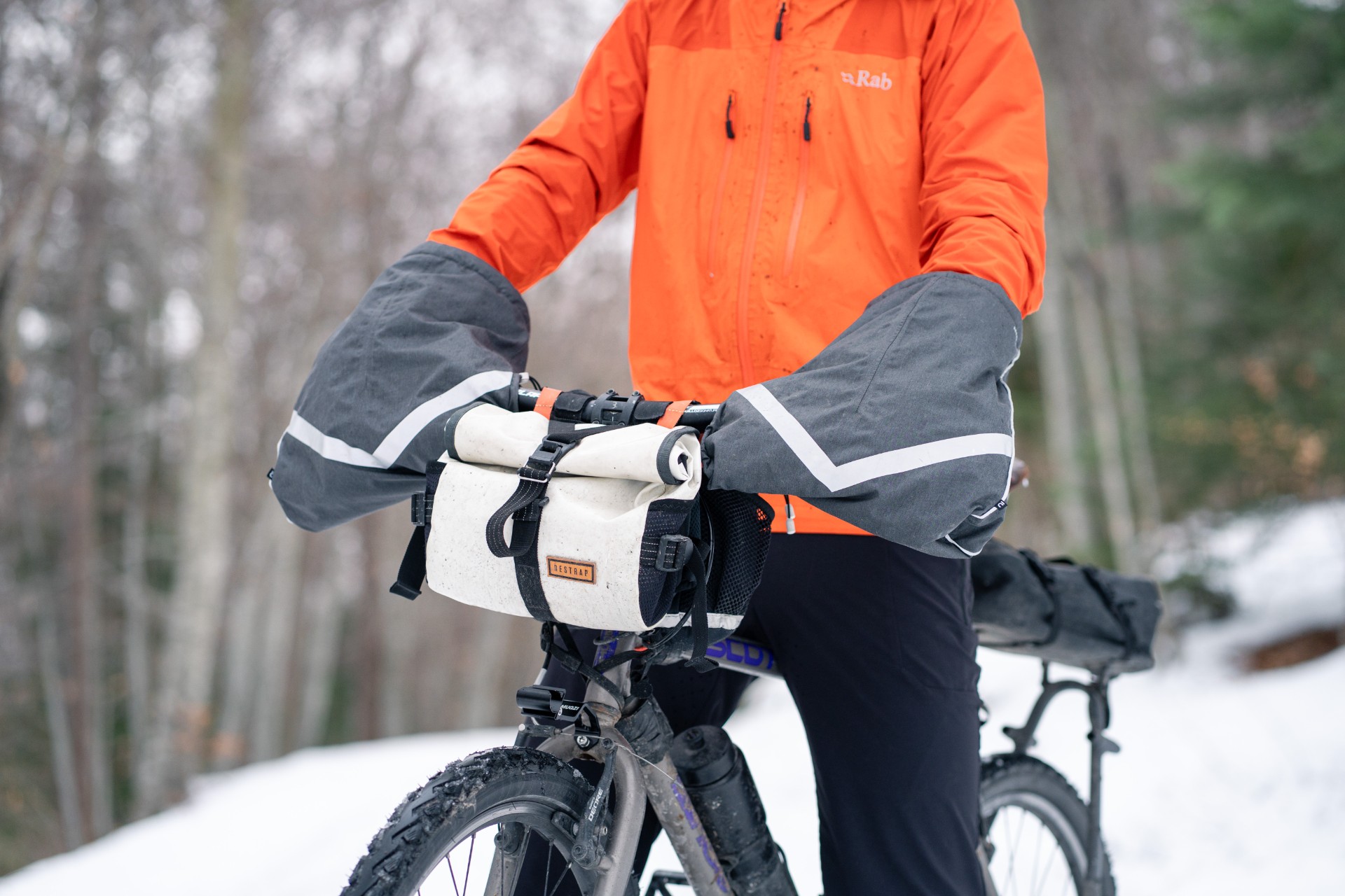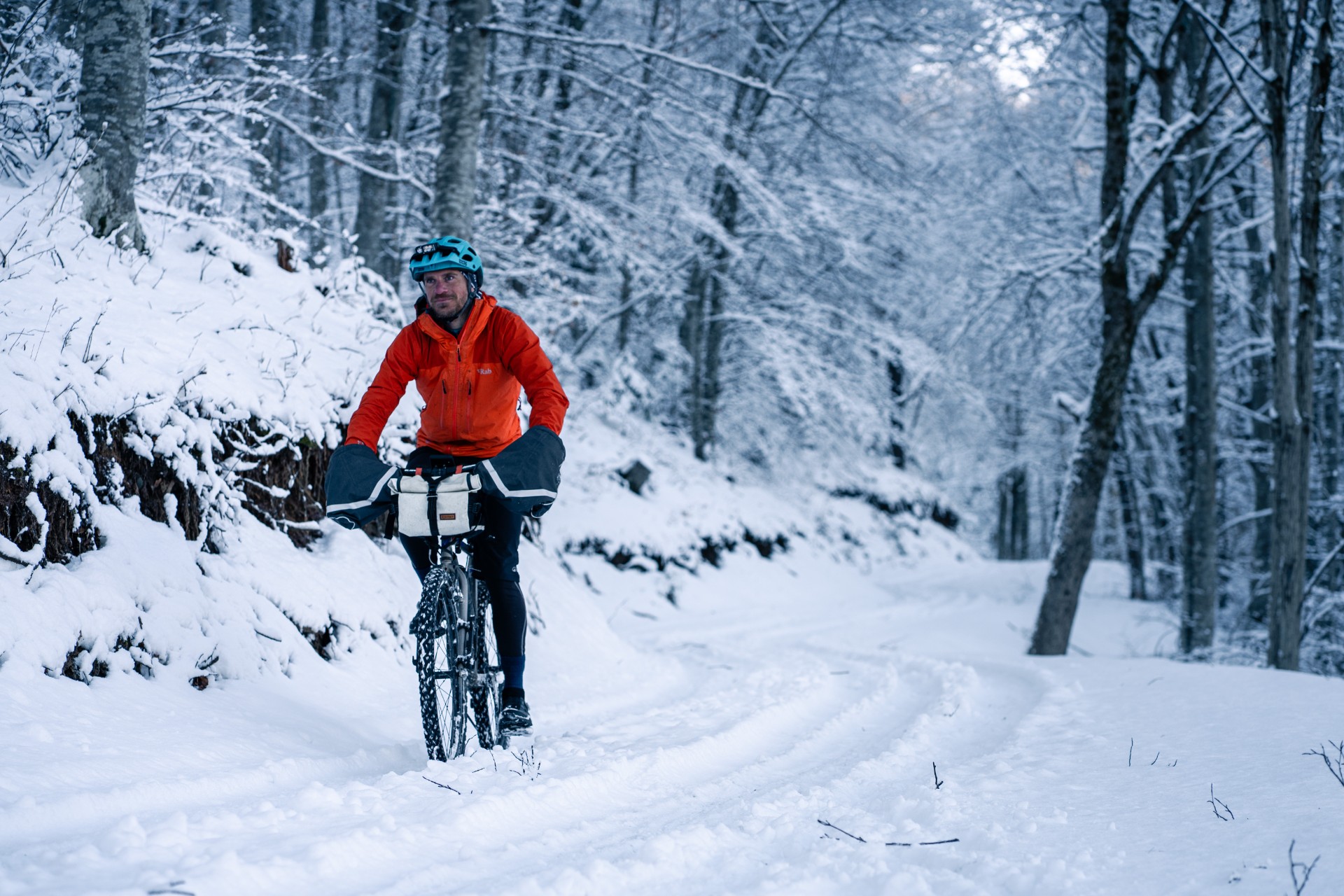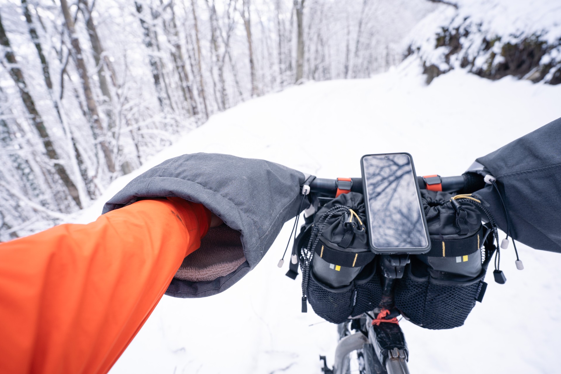 Pour moi, les manchons incarnait l’image d’Épinal du grand Nord. Un accessoire porté soit par les vélotafeurs canadiens de l’extrême, qui bravent les tempêtes de neige, soit par l’aventurier en fatbike, qui traverse les latitudes nord en hiver. À l’instar du bien nommé modèle expédition, fabriqué par Revelate Designs. Pour nos hivers européens, je jugeais l’engin un poil surdimensionné, un peu comme si l’on sortait le chasse-neige pour déneiger une terrasse.