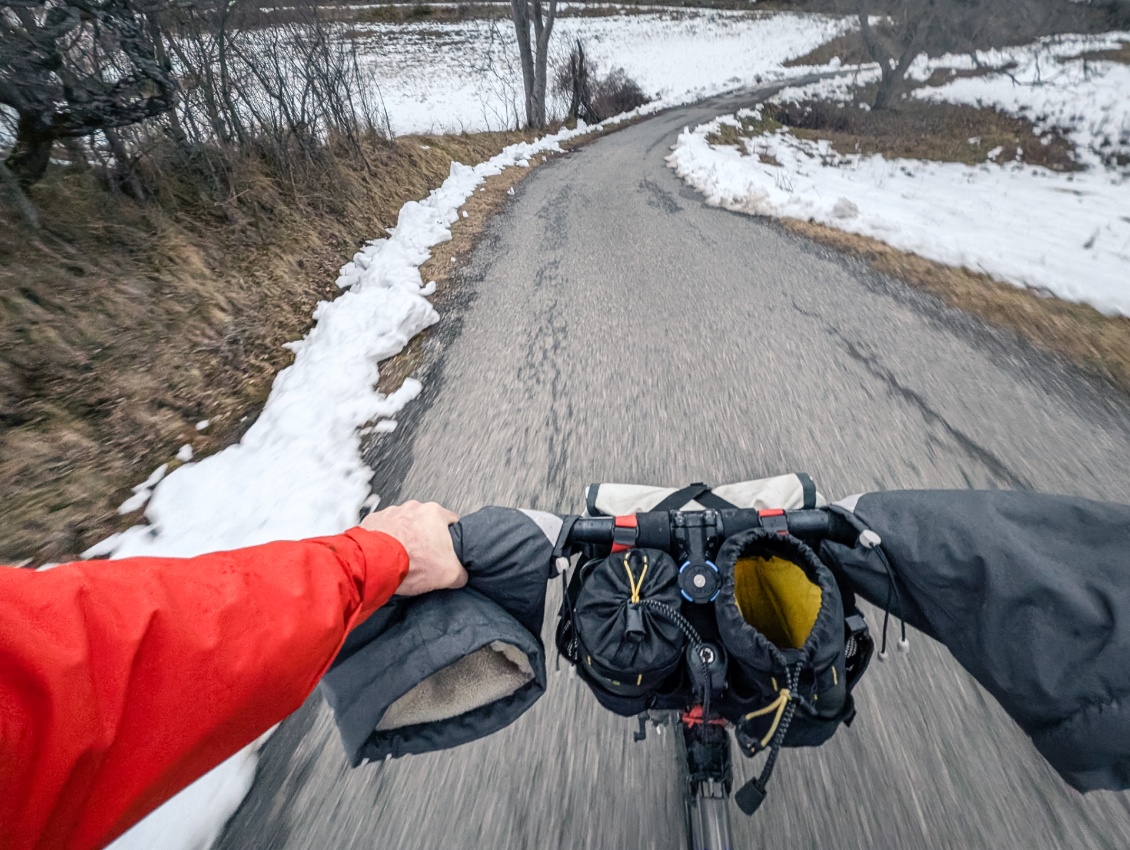 Sur le plan thermique, l’efficacité est telle que les gants deviennent tout à fait optionnels. Selon l’envie et l’humeur, je n’en utilise désormais que des très fins, simplement pour des questions de toucher avec les poignées. Comme pour les mitaines en somme.
