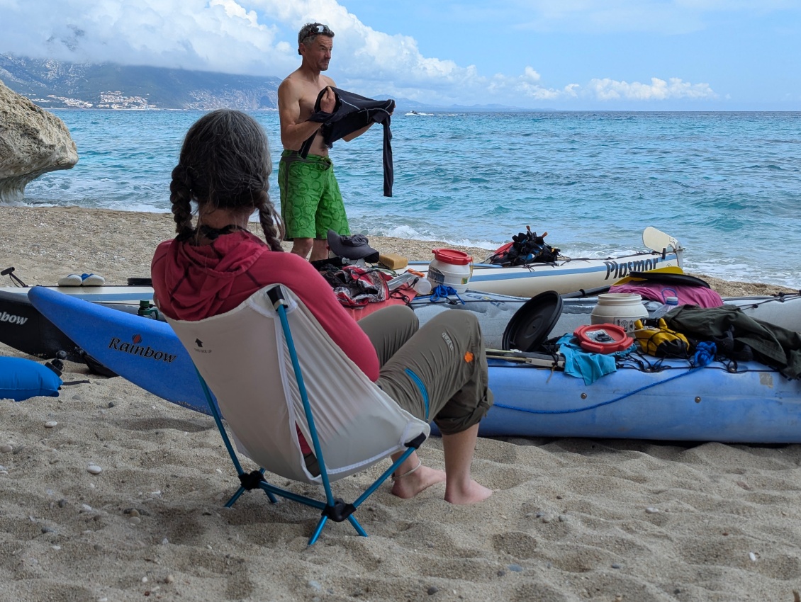 Cela faisait des années que je me disais qu’un tel test serait intéressant, l’occasion s’est présentée ici de récupérer une Chair Zéro juste in-extremis pour partir en itinérance kayak bivouac printanière en Sardaigne. C’est dans ces conditions que nos tests ont été réalisés ; nous étions 5 et chacun a pu se glisser dans le mini-siège et profiter de son confort.La Chair Zero fait partie de la gamme « Chaises ultra légères » d’Hélinox. À noter qu’elle existe aussi en version L, plus grande, plus stable et pouvant supporter plus de poids (145 kg contre 120 ; la Chair Zero L pèse 673 g). Et en version High-Back (650 g) avec un dossier plus haut et donc un soutien plus confortable au niveau des épaules et du haut du dos. À noter en outre qu’il existe de nombreux accessoires vendus séparément et qui ne semblent pas juste des gadgets, n’hésitez pas à jeter un œil sur le site de la marque.