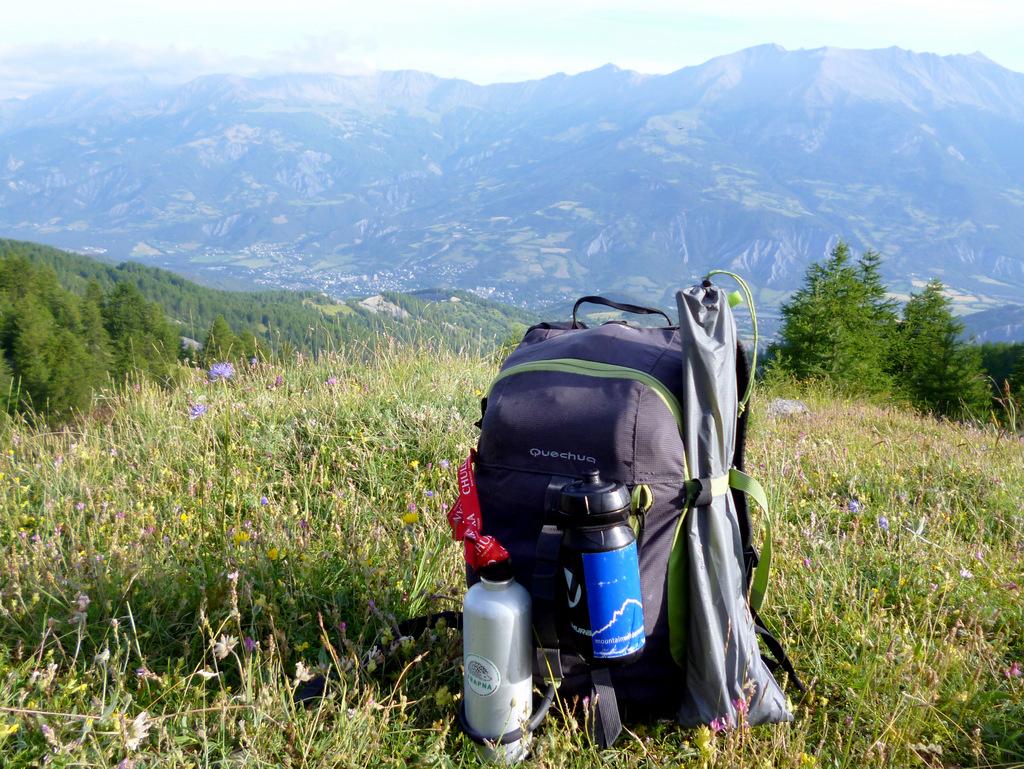 Voici par exemple notre sac de bivouac pour 2 personnes utilisé lors d’une vélo-rando dans la vallée de l’Ubaye : tente, matelas Nemo Astro Lite, sacs de couchage, réchaud… tout l'essentiel y est !