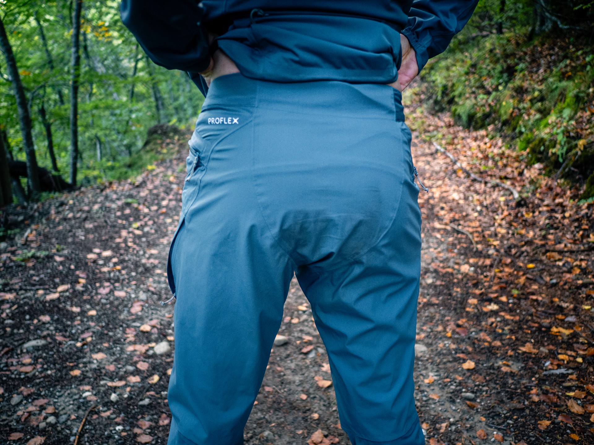 - Tissu : flexible, sa souplesse est agréable au pédalage. Baptisé Proflex, il offre – pour reprendre les termes de RAB – la souplesse d'un softshell et la protection imperméable d'un hardshell. Aussi, il est très doux au toucher. Vraiment doux ! Ça peut être un détail, mais cela atténue l’effet plastoc habituel des vêtements coupe-vent ou étanches. Au niveau du fessier, un empiècement avec un tissu plus résistant permet de limiter l’usure causée par les frottements sur la selle, talon d’Achille de tels vêtements.